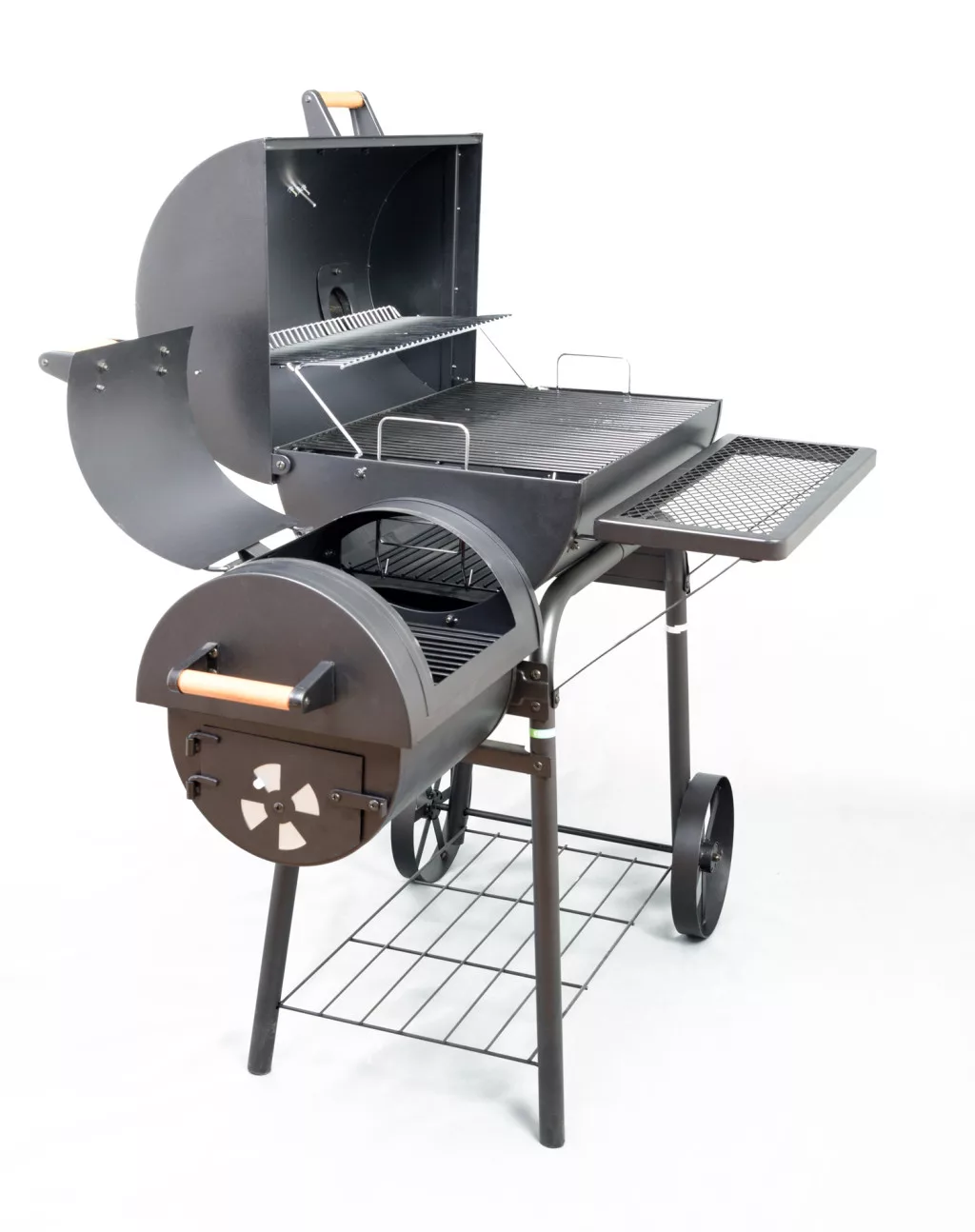 A kerti grillen kettő grillezőfelület is található, így egyszerre több ételt is készíthet. A grillezéshez faszén és brikett is használható. A tökéletes füstölt íz élmény érdekében javasoljuk a kemény fa használatát, mint pl. a tölgy, bükk, vagy a nyírfa. A füstölés végén ajánljuk a keményfaforgács használatát - ideális a szilva-, alma-, vagy körtefa.