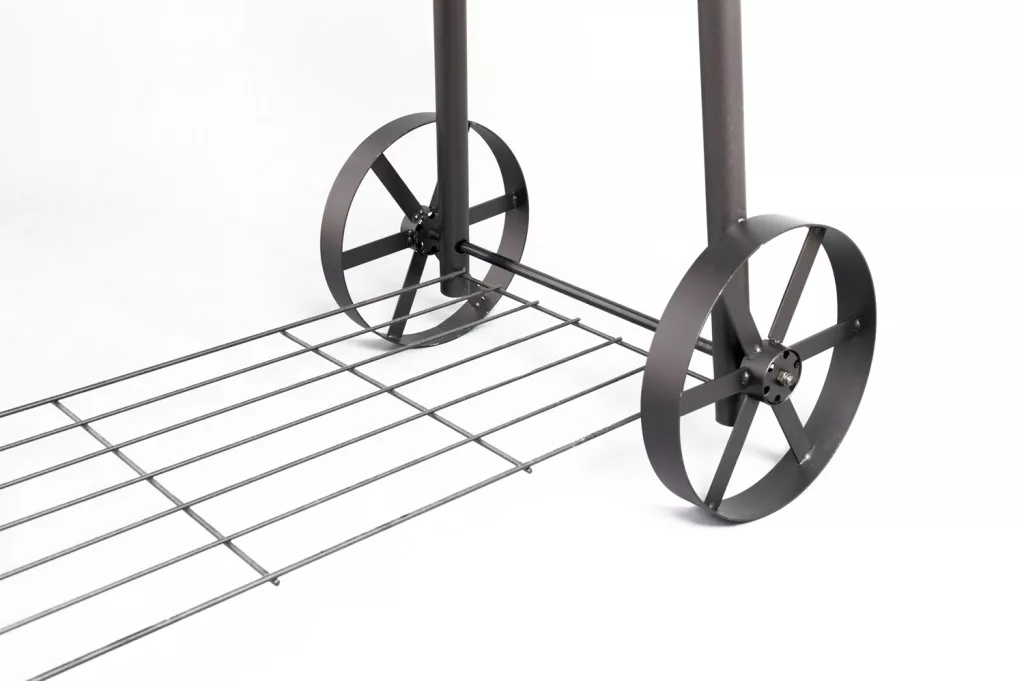 A könnyű kezelhetőség és mozgathatóság érdekében a grillt praktikus kerekekkel szereltük fel. Egyenletes légelosztás a kamrákban. Kéménye fedeles, bent tartja a levegőt és védi a grillsütőt az esőtől.