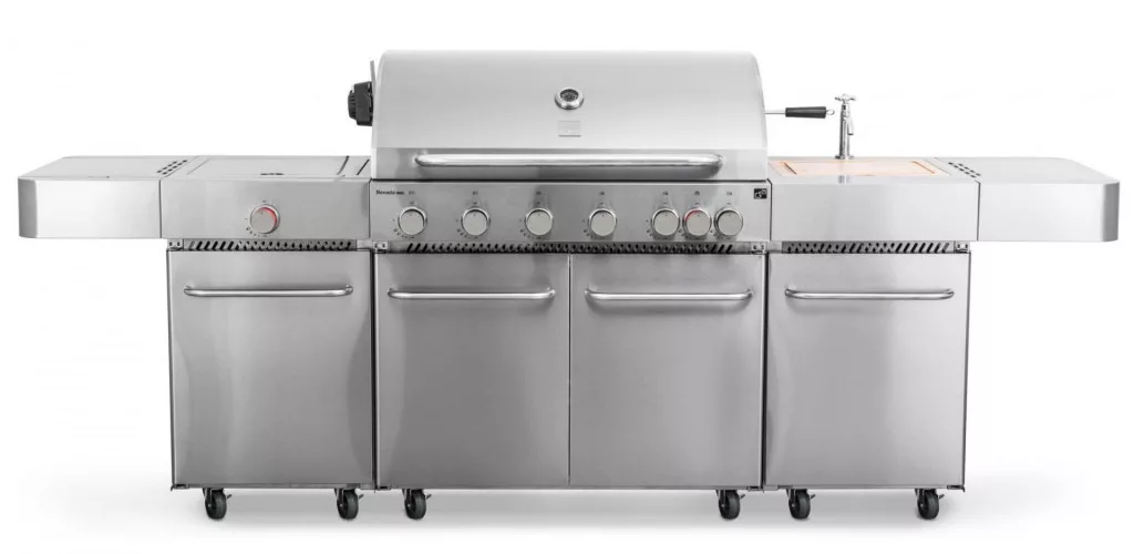 2020 újdonsága, 6 főégőfejjel, 1 oldalsó égőfejjel és 1 infravörös égőfejjel. A Nevada grillező konyha 8 égőfejjel, beépített mosogatóval, fedéllel, vágódeszkával és nagy munkafelülettel, ötletesen kialakított rakodó felülettel, a fedelében beépített hőmérővel Flame Tamer rendszerrel és meghoszabbított garanciával rendelkezik.