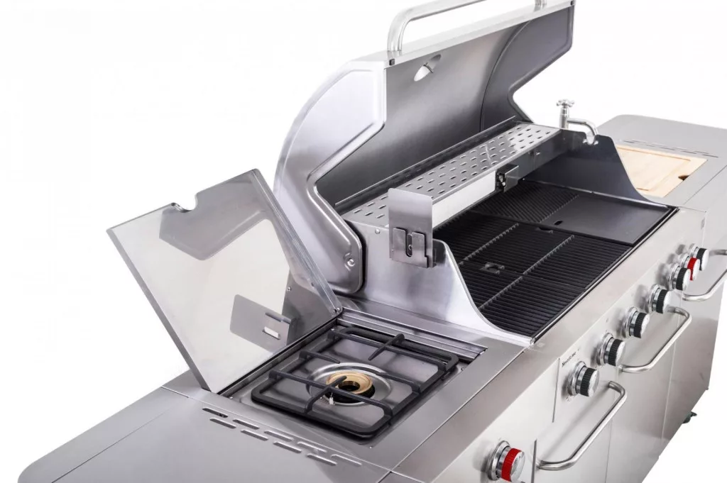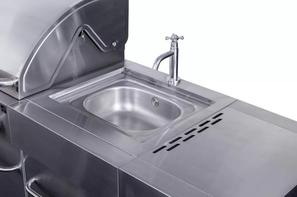 Minden egy helyen – egyszerre grillezhet, készítheti a köretet az oldalsó égőfejen, ráadásul a használt edényeket azonnal elöblítheti a beépített mosogatóban, anélkül hogy a grillező felszerelést hordozni kellene a házba és vissza.
