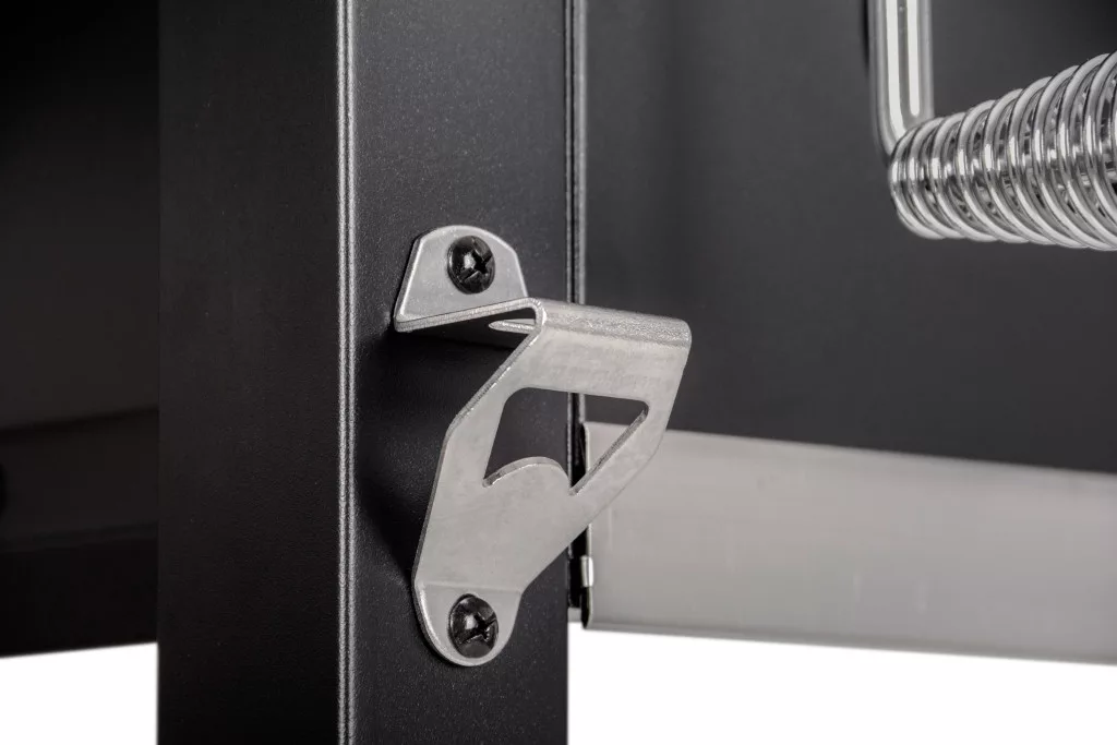 Az oldalsó lecsukható polc egyike akasztókkal van ellátva a grillező eszközök felakasztására.