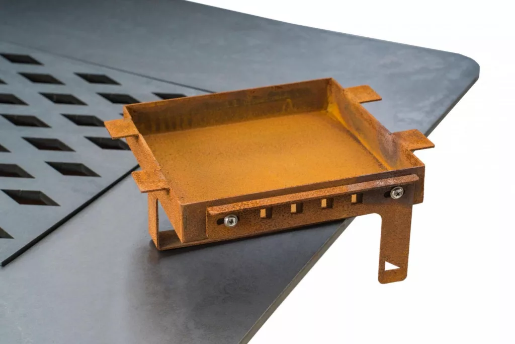 A grill felső része egy kihúzható hamutartóval ellátott kandalló ból áll, és a grill domináns jellemzője a hatalmas grillezési felület - plancha vastagsággal. 1 cm-es, enyhén a közepe felé döntve.