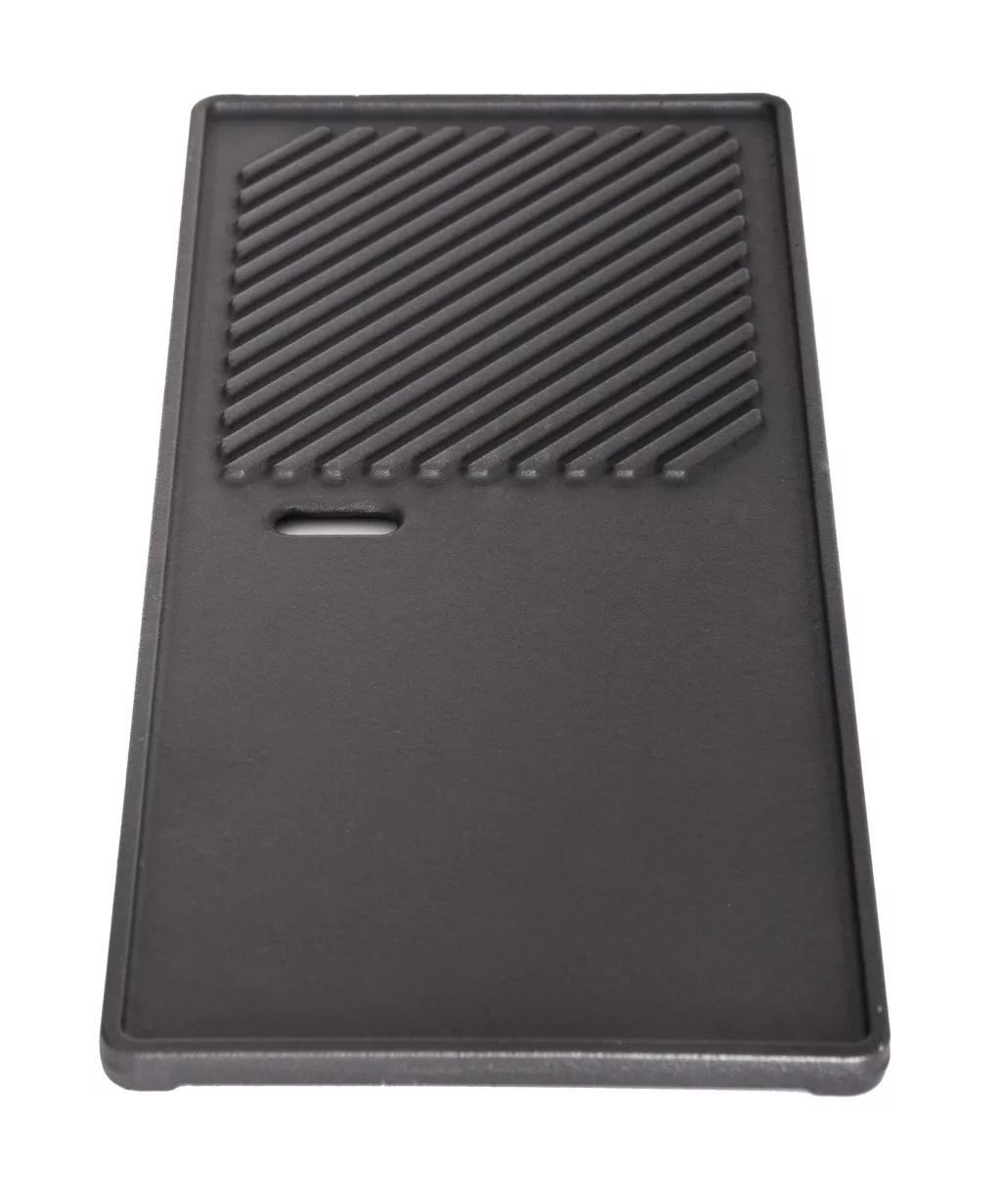 A öntöttvas az egyik legellenállóbb anyagok közé tartozik, melyeket grillezéskor használnak. Ellenál a magas hőmérsékletnek és a karcolásoknak is. A lemez mindkét felén más felületet találunk. Egyik fele sima, melyet leginkább a szeletelt zöldségek, tojások és sajtok grillezésekor használhatunk. Másik fele recés, mely tökéletes alapot biztosít a steakek, nagyobb zöldségek és halak grillezéséhez.
