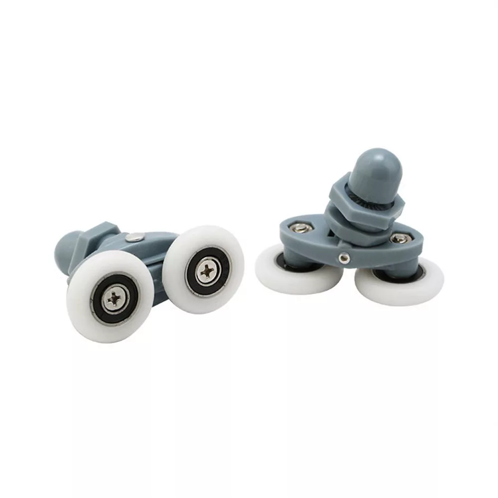 Ez a G-33 típusú dupla görgő kifejezetten 4-5 mm vastag üvegajtókhoz készült. Az excenteres állítható, így pontosan illeszkedik a zuhanykabinhoz. A görgők 21,8 mm átmérőjűek, a furatok átmérője 12 mm, így tökéletesen illeszkedik és könnyen felszerelhető. A görgő teljes hossza 42 mm.