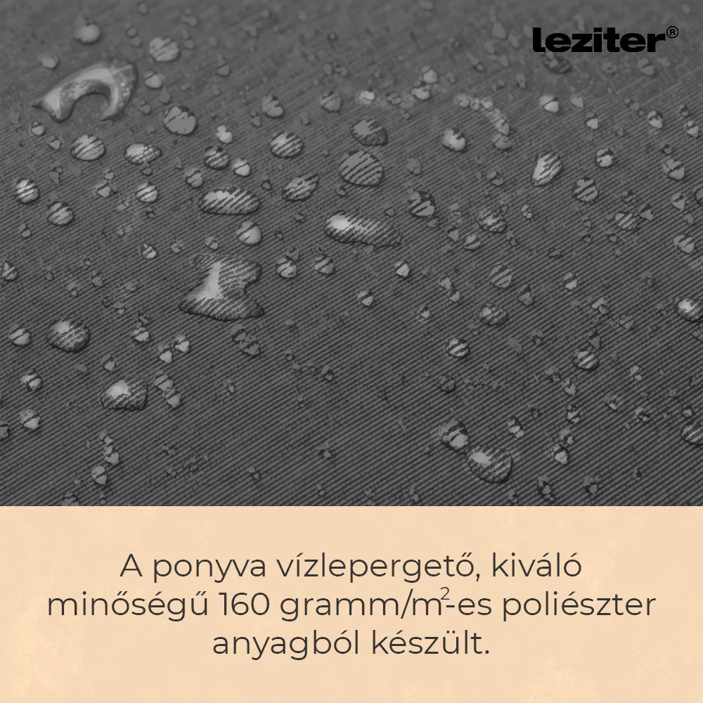 - Ponyva anyaga: 160 g/m² poliészter, vízlepergető bevonattal