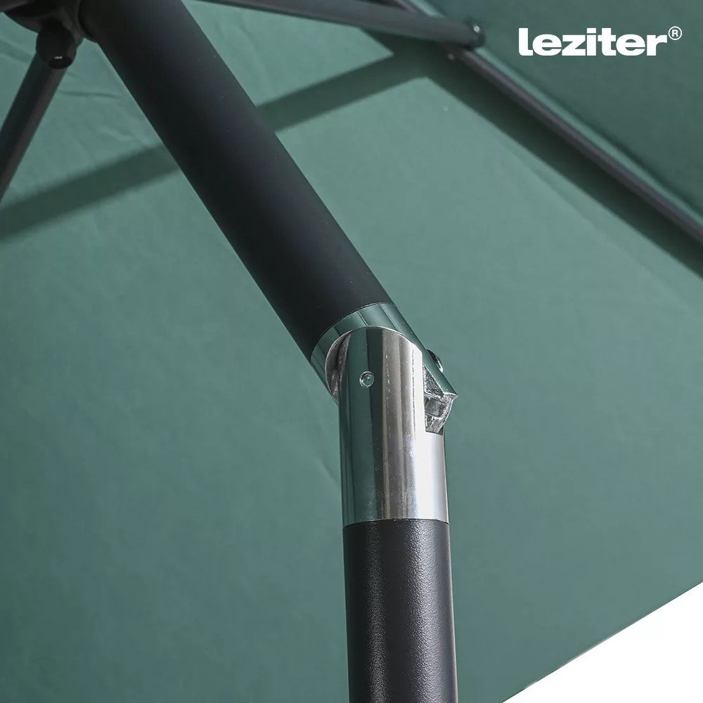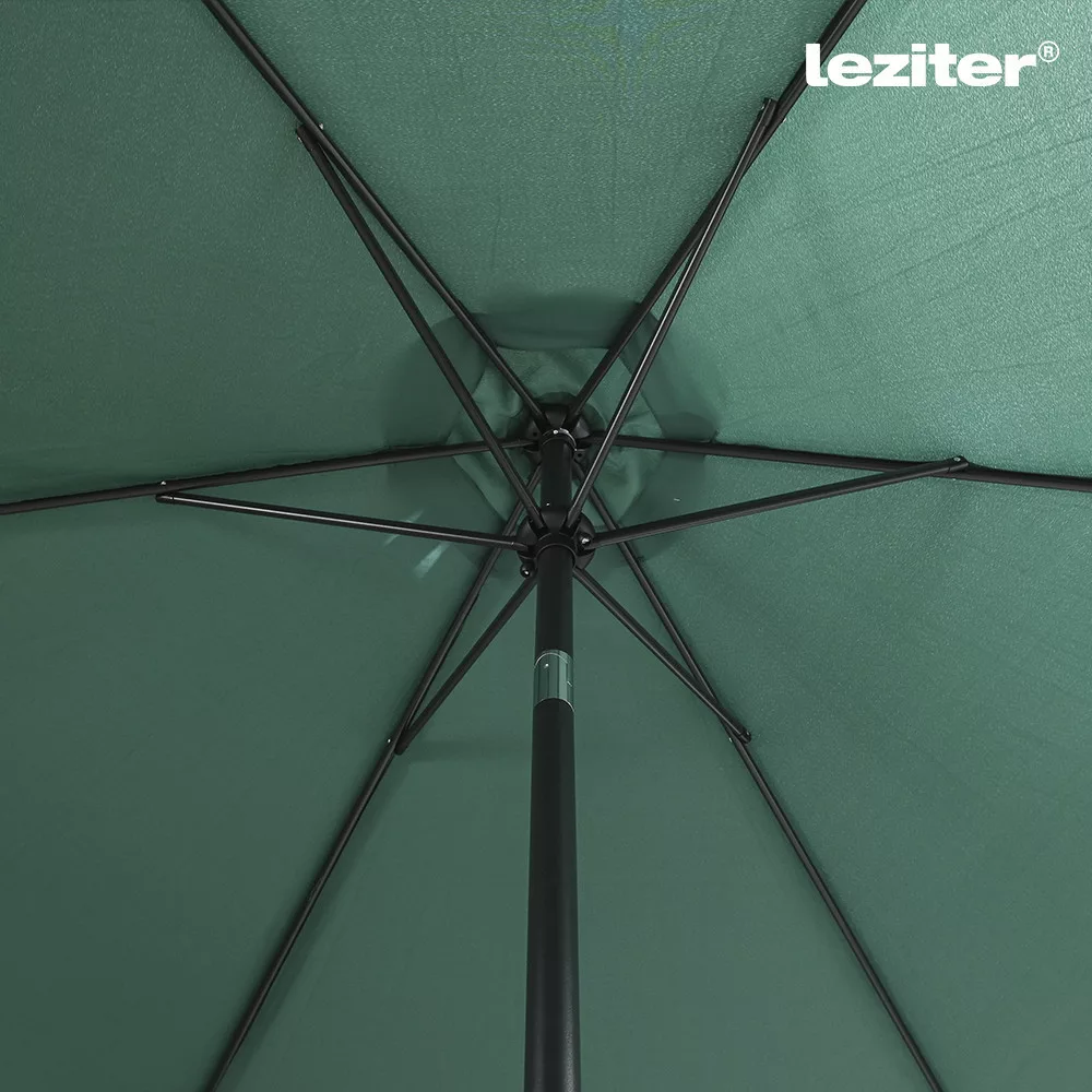 A Leziter Gina kerti napernyő 300 cm átmérőjű kialakítással rendelkezik, amely egyenletes lefedést biztosít a középoszlop körül. A kör alakú forma jól használható kertekben, teraszokon vagy kerti bútorok fölött. A ponyva kialakítása a mindennapi kültéri használathoz igazodik, felülete vízlepergető, így a nedvesség nem szívódik fel azonnal. A zöld szín természetes hatású megjelenést biztosít, amely könnyen illeszkedik különböző kerti környezetekbe.