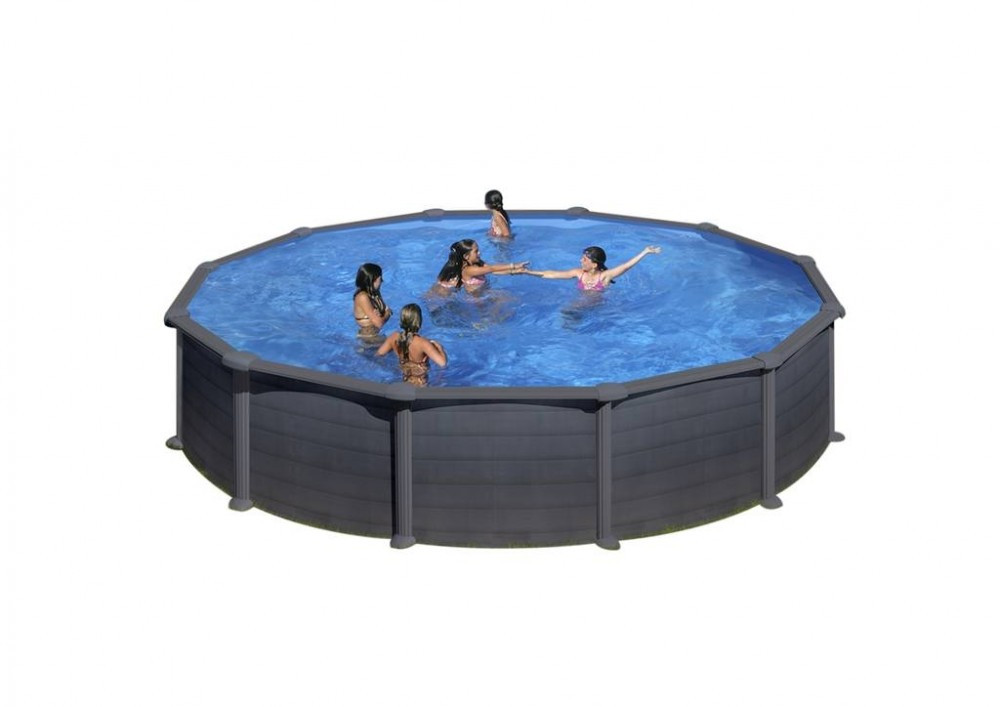 Elegáns, grafit színű, galvanizált acélfalú, PVC belső fóliás medence. Besüllyesztés nélkül talajszintre, vagy földbe süllyesztve is telepíthető. Megfelelő talajelőkészítést követően, aljzatbeton nélkül, homokágyra, vízszintes, tömör felületre házilag is egyszerűen felállítható. Az alátámasztásoknál teherhordó aljzat szükséges (50x50 cm-es beton járólap). Az acélpalást enyhén bordázott felületű, mely növeli a medence merevségét, stabilitását.