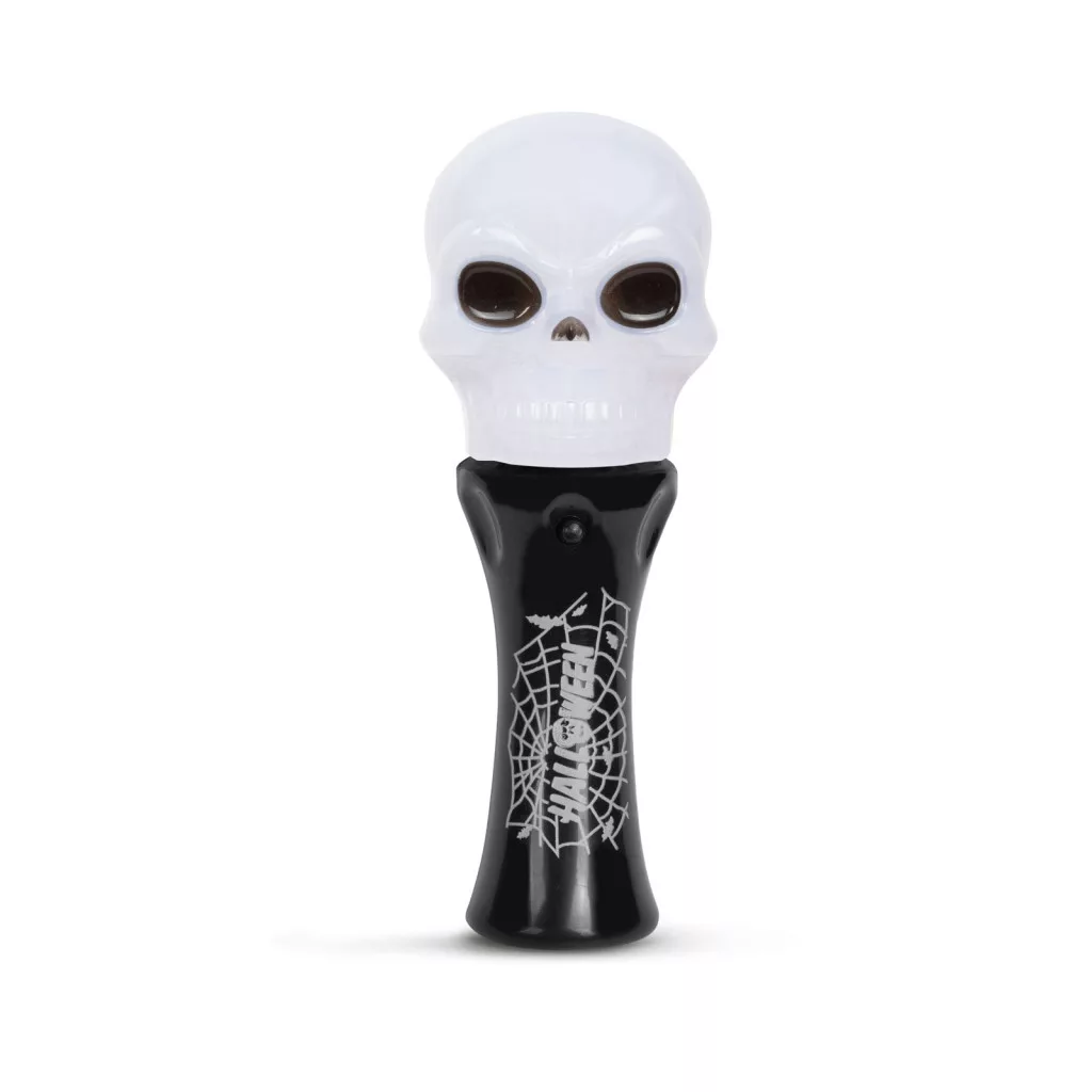 Hordozható Halloween-i LED lámpa koponya fejrésszel! A koponyában lévő színváltó LED-ek villogva világítják meg a lámpatestet, ezáltal teremtve halloween-i parti hangulatot. A lámpában egy 3 színű modul található, amely piros, zöld és kék fény kibocsátására alkalmas.