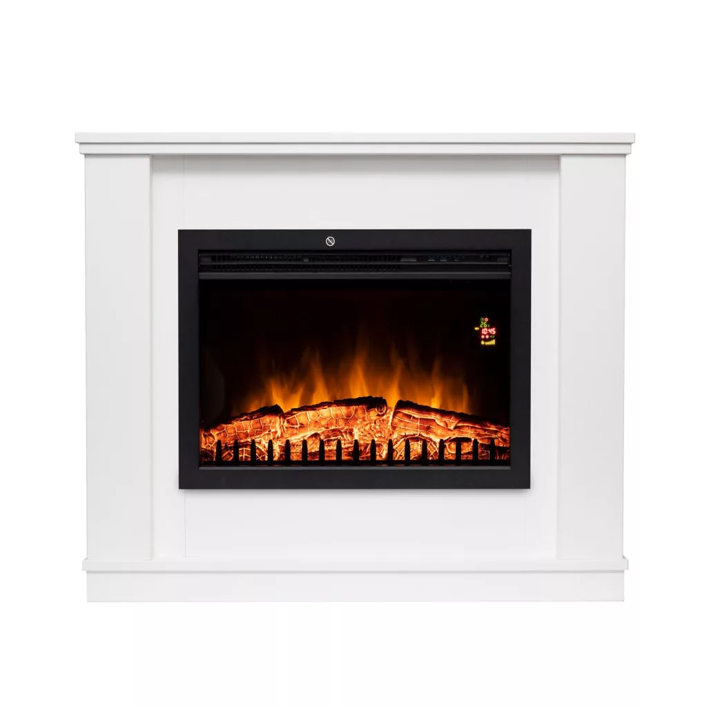 Az álló elhelyezésű kandalló elegáns fehér keretével bármilyen lakberendezési stílushoz illeszkedik. Ez a látványkandalló két fűtési fokozattal rendelkezik (1000 W és 2000 W), amelyek segítségével könnyedén szabályozhatja az ideális hőmérsékletet a 15 °C és 30 °C közötti tartományban. Az első kifújási pontnál elhelyezett ventilátor biztosítja a hatékony hőeloszlást, míg az elektronikus termosztát segítségével pontosan beállíthatja a kívánt hőmérsékletet.