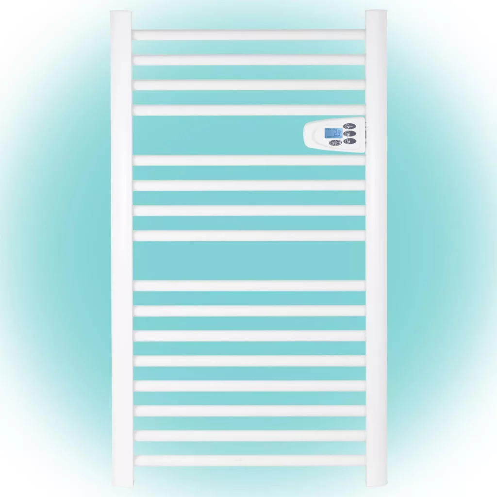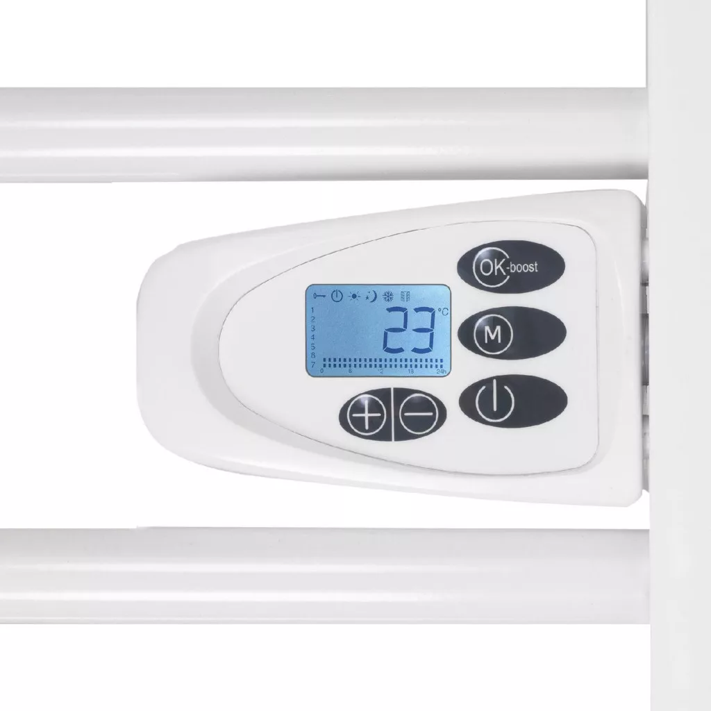 Ez az 500 W névleges teljesítményű törölközőszárító gyorsan és hatékonyan szárítja meg törölközőit, miközben a fürdőszobában is kellemes meleget biztosít. A beépített kezelőfelület és LCD kijelző segítségével könnyedén beállíthatja a kívánt hőmérsékletet és időzítési programot. Az elektronikus termosztát precíz szabályozást tesz lehetővé, míg a heti programozási funkció maximális rugalmasságot biztosít, így a készülék mindig az Ön igényeihez igazodik.