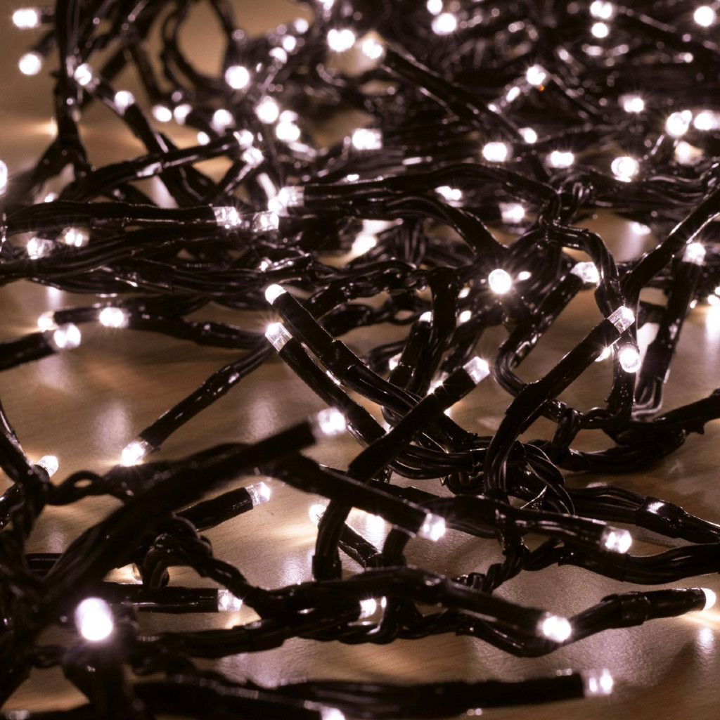A 768 db apró, 3 mm-es átmérőjű melegfehér LED fénye ragyogó atmoszférát teremt, amelyet a fekete vezeték harmonikusan egészít ki. A 8 funkcióval, memóriával rendelkező üzemmód és az állítható fényerő gondoskodik a mindig tökéletes hangulatról. Válasszon a 3 kiválasztható ismétlődő időzítés közül, vagy irányítsa a fényeket a mellékelt távirányítóval, melyhez CR2025 elem is tartozik. Az IP44-es hálózati adapter garantálja a megbízható kültéri használatot.