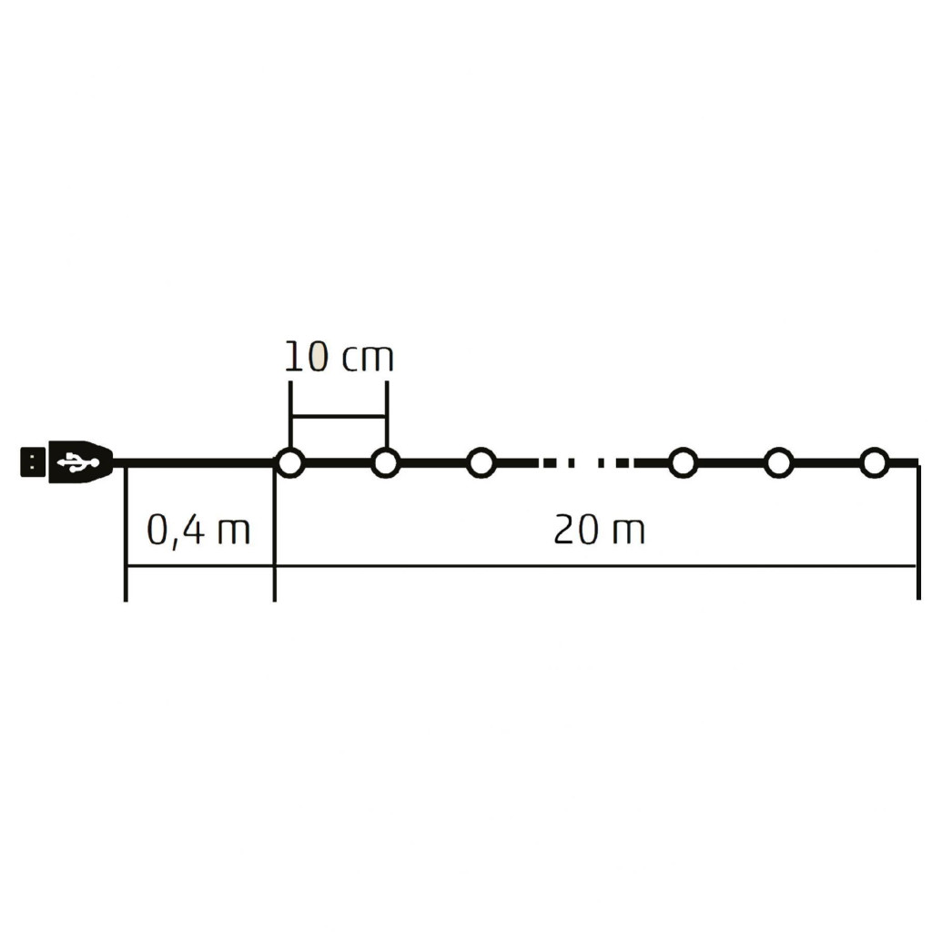 Home ML 200 RGB SMART micro LED-es fényfüzér, 20 m / 200 db RGB micro LED, applikációval vezérelhető, USB csatlakozó, beltéri kivitel