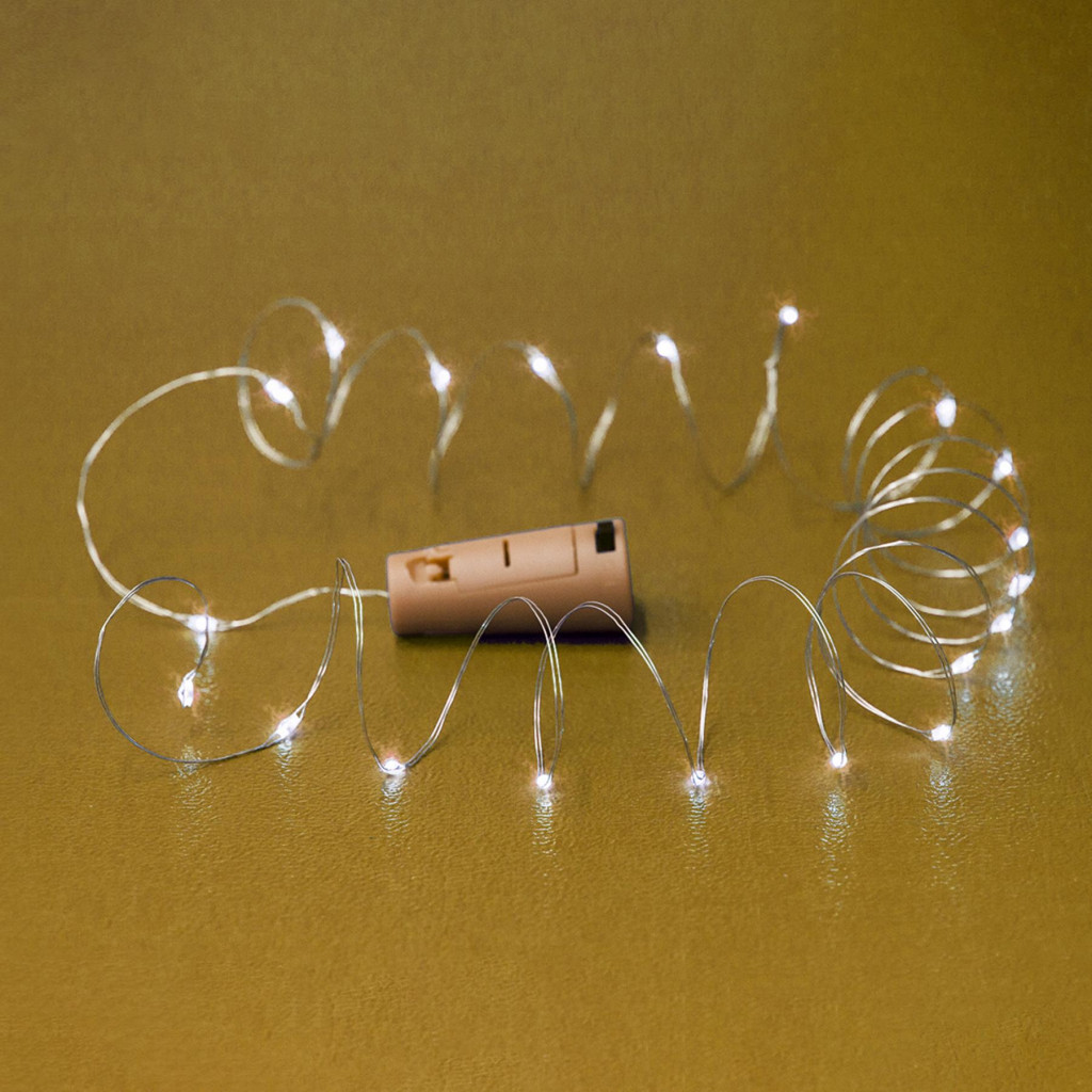 Ez a 2 méter hosszú fényfüzér 20 darab apró, pontszerű micro LED-del van ellátva, amelyek melegfehér fényt bocsátanak ki, miközben a vékony, átlátszó vezeték szinte észrevétlenül olvad a környezetbe, így a fényhatás kerül a középpontba. A fényfüzér állófényű, tehát folyamatos, nyugodt fényt biztosít, amely kiválóan alkalmas kisebb helyek dekorálására, mint például polcok, tükrök vagy asztali díszek. A be/ki kapcsolóval könnyen kezelhető, így egyszerűen vezérelhető, amikor szükséges. A termék 2 db 1,5 V-os (LR44) gombelemmel működik, amelyek tartozékok, így a telepítés után azonnal használatba vehető.
