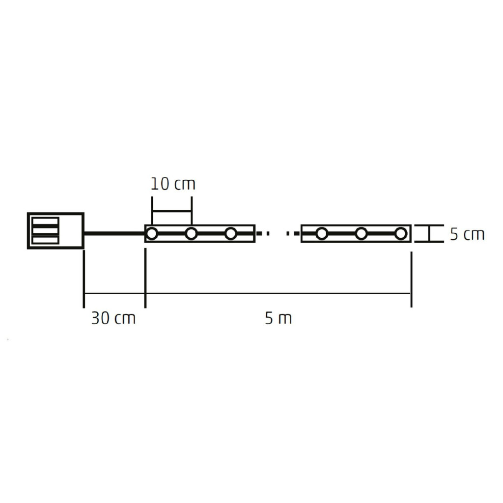 hosszúság: 5 m / szélesség: 5 cm / LED-ek távolsága: 10 cm