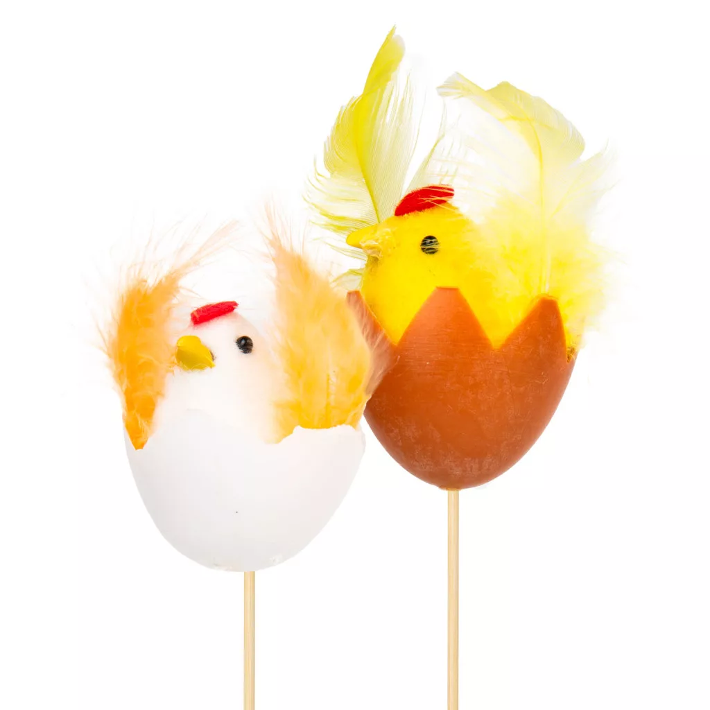 Díszítse otthonát vidám, tavaszi hangulattal, ezzel a bájos húsvéti dekorációval! A leszúrható csibetojások kiválóan alkalmasak virágcserepek, koszorúk vagy kerti dekorációk kiegészítésére. Kétféle változatban kaphatók, élénk színeik és tollas részleteik pedig még különlegesebbé teszik az ünnepi díszítést. Méretének köszönhetően könnyedén beilleszthetők bármilyen kompozícióba!