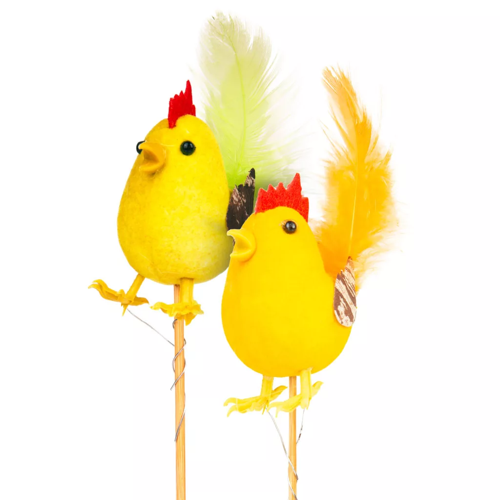 Díszítse otthonát vidám, tavaszi hangulattal, ezzel a bájos húsvéti dekorációval! A leszúrható kakasok kiválóan alkalmasak virágcserepek, koszorúk vagy kerti dekorációk kiegészítésére. Kétféle változatban kaphatók, élénk színeik és tollas részleteik pedig még különlegesebbé teszik az ünnepi díszítést. Méretének köszönhetően könnyedén beilleszthetők bármilyen kompozícióba!