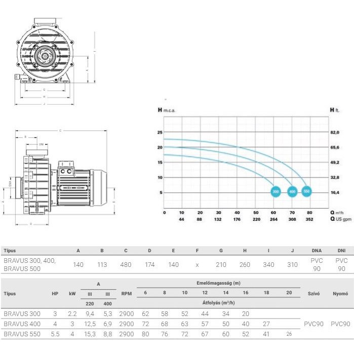 A Bravus szivattyú egy kompakt méretű, kiváló hidraulikus hatásfokú szivattyú élményelemekhez, masszázs rendszerekhez, ellenáramoltatók szereléséhez. A szivattyú ház üvegszál erősítésű polipropilénből készült, ami rendkívül tartóssá teszi azt. Járókerék és diffúzor alapanyaga NORYL. Édes- és sós vizű medencékhez használható (max. 5 kg só 1 m 3 vízben)
