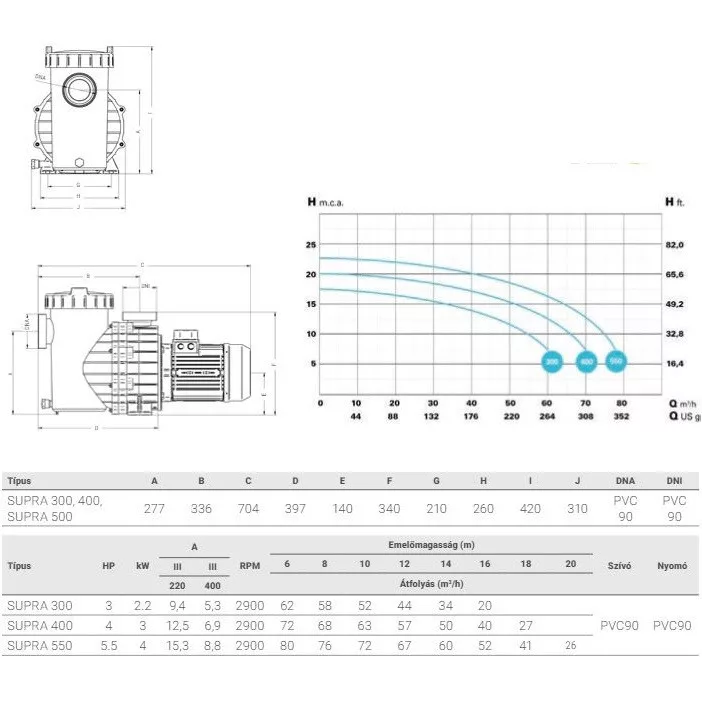 A Supra az önfelszívó szivattyúk családjába tartozik. Kiváló hidraulikus hatásfokú szivattyú. Beépített nagyméretű előszűrő kosárral rendelkezik. A szivattyú ház üvegszál erősítésű polipropilénből készült, ami rendkívül tartóssá teszi azt. Járókerék és diffúzor alapanyaga NORYL. Édes- és sós vizű medencékhez használható (max. 5 kg só 1 m 3 vízben)
