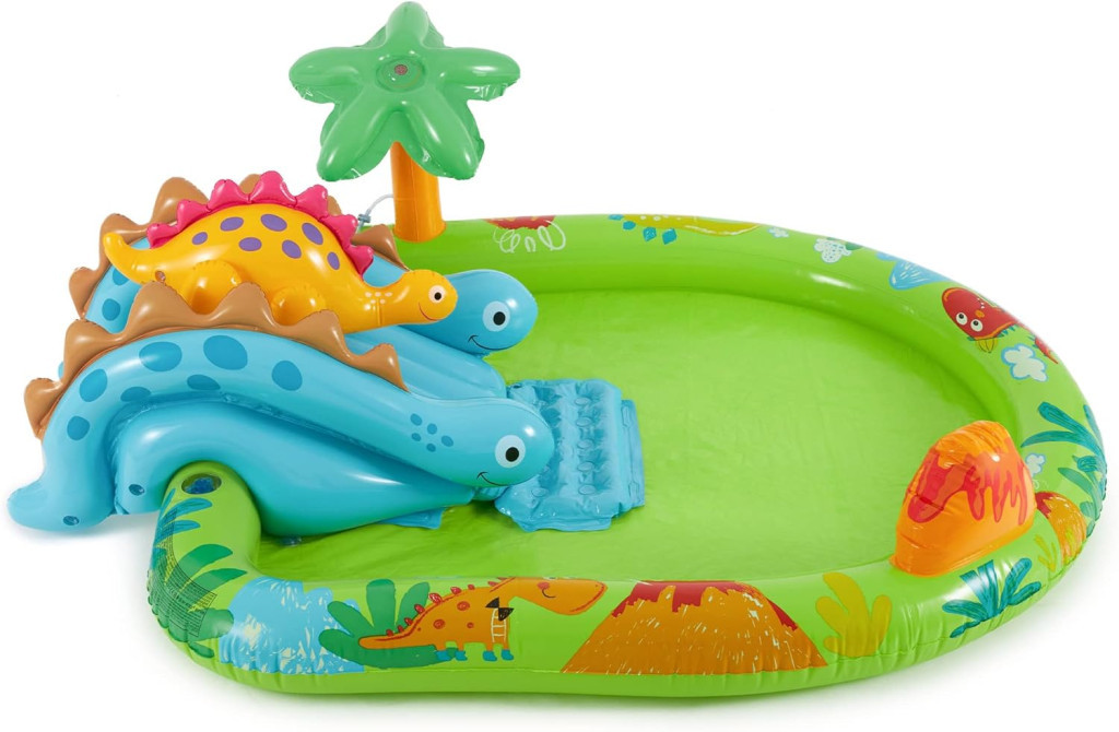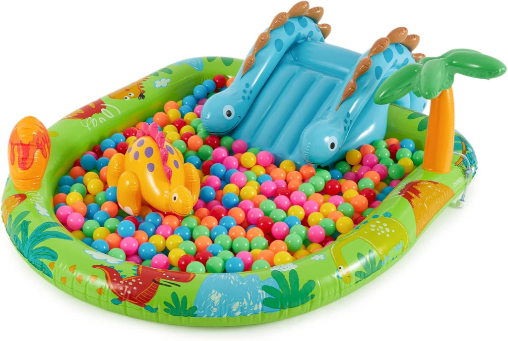 Az Intex 57166 Dinosaur medence játszóközpont 2 éves kortól alkalmas gyermekek számára. Tartalmaz egy csúszdát és számos egyéb játékelemet. A medence űrtartalma 143 liter, a medence alján egy leeresztő dugó található.