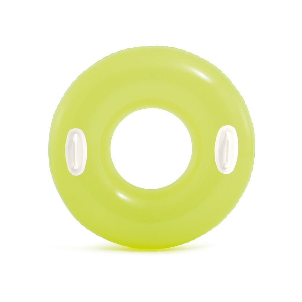 Stílusos, neon színű felfújható úszógumi 76 cm külső-átmérővel, fényes felülettel és kényelmes kapaszkodókkal felszerelve. Kiváló választás nyári medencepartikhoz, tengerparthoz, vagy családi pihenéshez. Ajánlott korhatár: 8 év felett; teherbírás: kb. 40 kg.