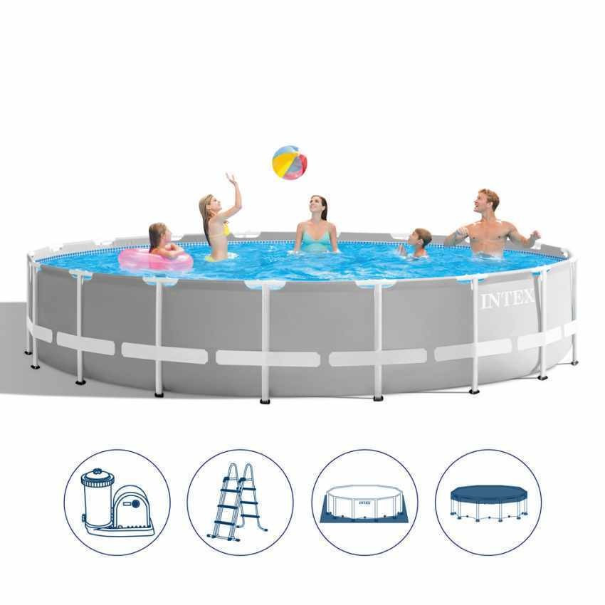 Szinterezett fémvázas medencetest, vastag és extra tartós 3 rétegű szálerősített fóliával, 5,67 m³/h teljesítményű papírszűrős vízforgatóval. Az erős PVC medence testet csőváz tartja, amelyek a testen kialakított füleken keresztül tolva merevítik a szerkezetet.