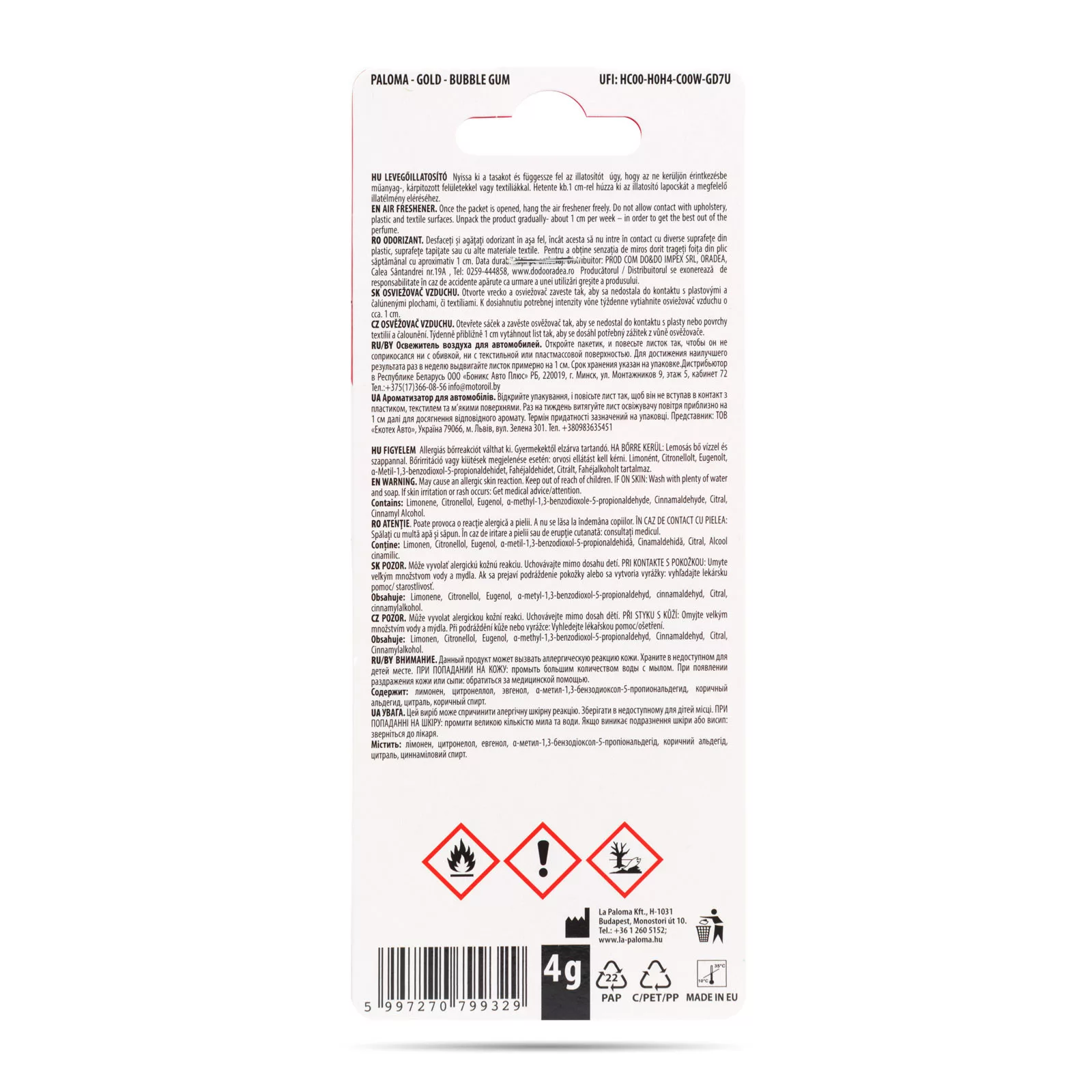 Illatosító - Paloma Gold - Bubble Gum