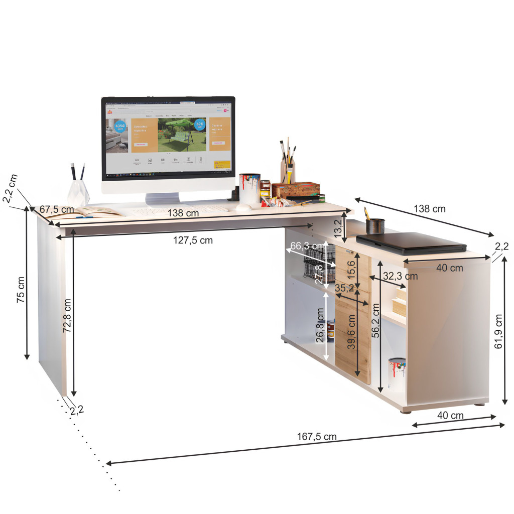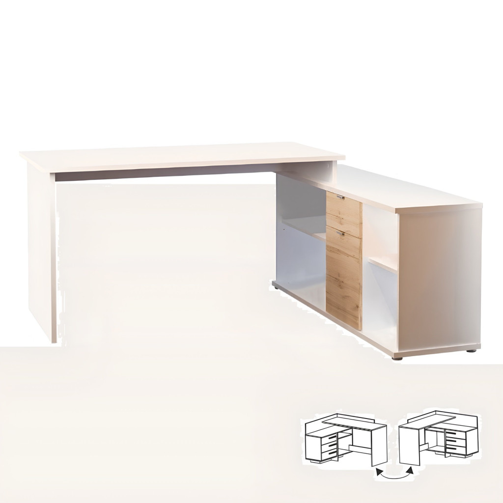 Univerzális sarokíróasztal, számítógépasztal, polcokkal és fiókos szekrénnyel, DALTON 2 NEW