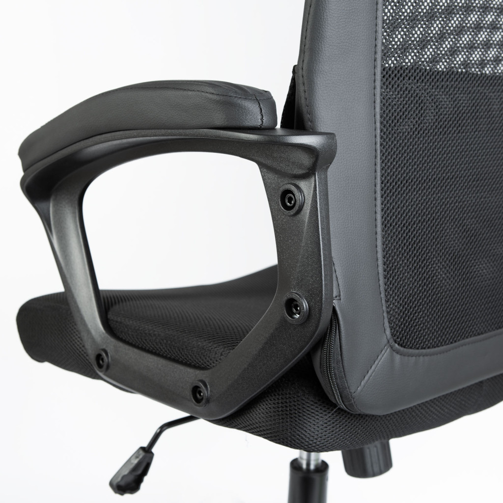 Modern megjelenésű, kényelmes irodai forgószék fejtámlával, fekete színben, amely ideális választás otthoni vagy munkahelyi környezetbe. Ergonomikus kialakításának és állítható magasságának köszönhetően hosszabb ülések esetén is komfortos használatot biztosít. A háttámla és a karfák erős, de rugalmas anyagból készültek, míg az ülőfelület strapabíró rétegelt lemezre épül. A szék pillangómechanikával, gázlifttel és fém lábcsillaggal van ellátva, amely stabilitást és tartósságot garantál.