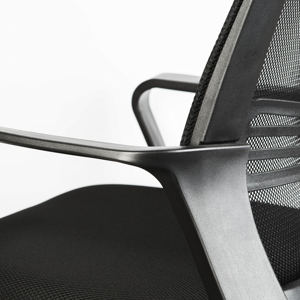 Modern megjelenésű, kényelmes irodai forgószék fekete színben, amely ideális választás otthoni vagy munkahelyi környezetbe. Ergonomikus kialakításának és állítható magasságának köszönhetően hosszabb ülések esetén is komfortos használatot biztosít. A háttámla és a karfák erős, de rugalmas anyagból készültek, míg az ülőfelület strapabíró rétegelt lemezre épül. A szék pillangómechanikával, gázlifttel és fém lábcsillaggal van ellátva, amely stabilitást és tartósságot garantál.