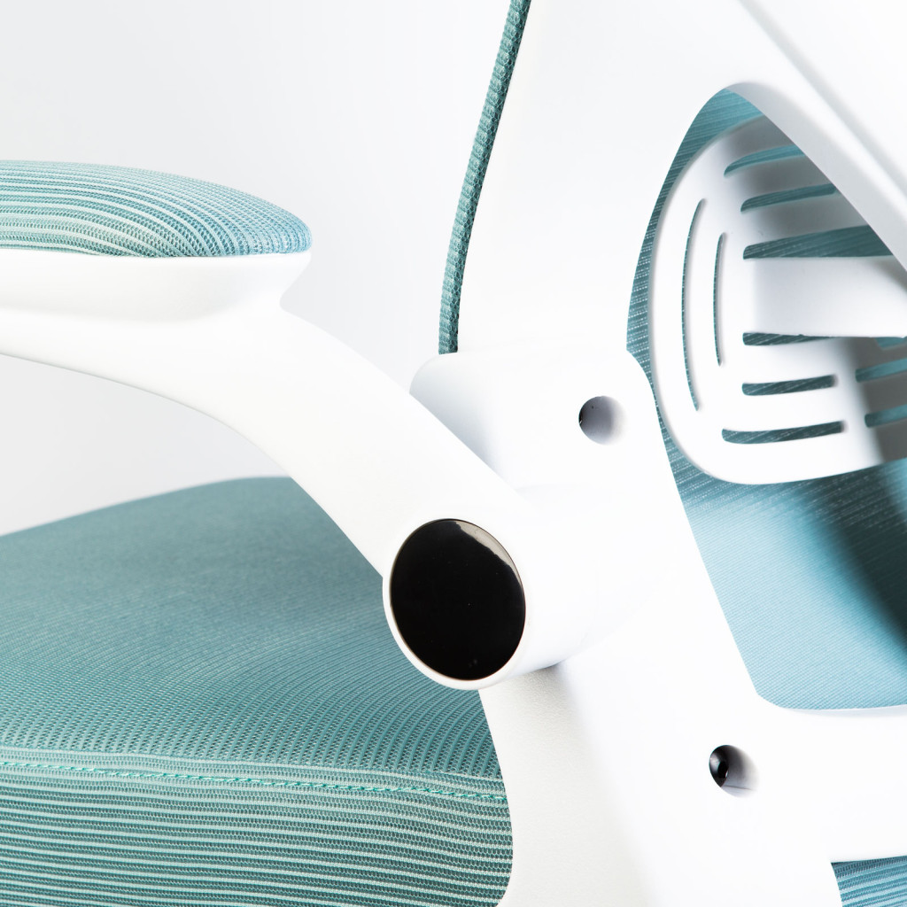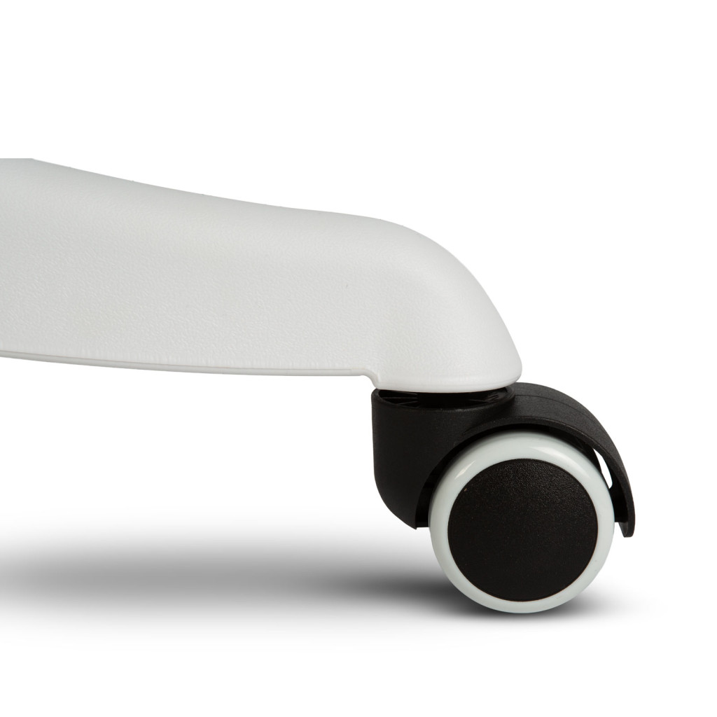 Modern megjelenésű, kényelmes irodai forgószék fehér/kék színben, amely ideális választás otthoni vagy munkahelyi környezetbe. Ergonomikus kialakításának és állítható magasságának köszönhetően hosszabb ülések esetén is komfortos használatot biztosít. A háttámla és a karfák erős, de rugalmas anyagból készültek, míg az ülőfelület strapabíró rétegelt lemezre épül. A kényelmes használat érdekében a karfák felhajthatóak. A szék pillangómechanikával, gázlifttel, masszív, műanyag lábcsillaggal és strapabíró görgőkkel van ellátva, amelyek stabilitást és tartósságot garantálnak.