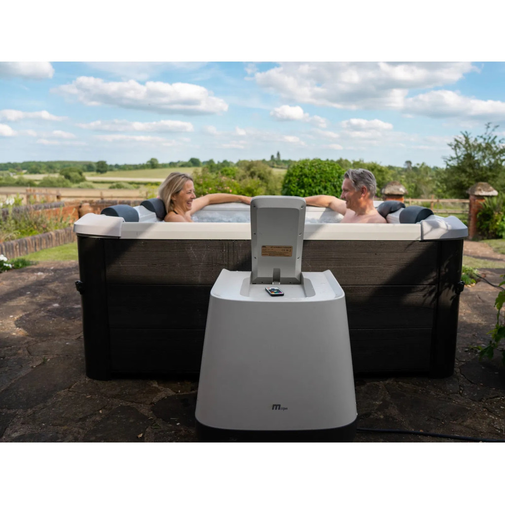 A külső műanyag paneles, faerezetet idéző design elegánsan illik teraszra vagy kertbe, ráadásul nem igényel állandó karbantartást. A 2300 W-os vezérlőegység gondoskodik a gyors, akár 1,8 °C/óra felfűtésről, az állítható 3 fokozatú levegőbefúvó pedig sűrű, pezsdítő buborékfelhőt varázsol. A 1100 W-os vízsugár-pumpa célzottan dolgozza át az izmokat, míg a 40 000 µW UVC fény és a 1800 l/óra szűrő aktívan tisztán tartja a vizet, hogy neked csak a lazításra kelljen figyelned.