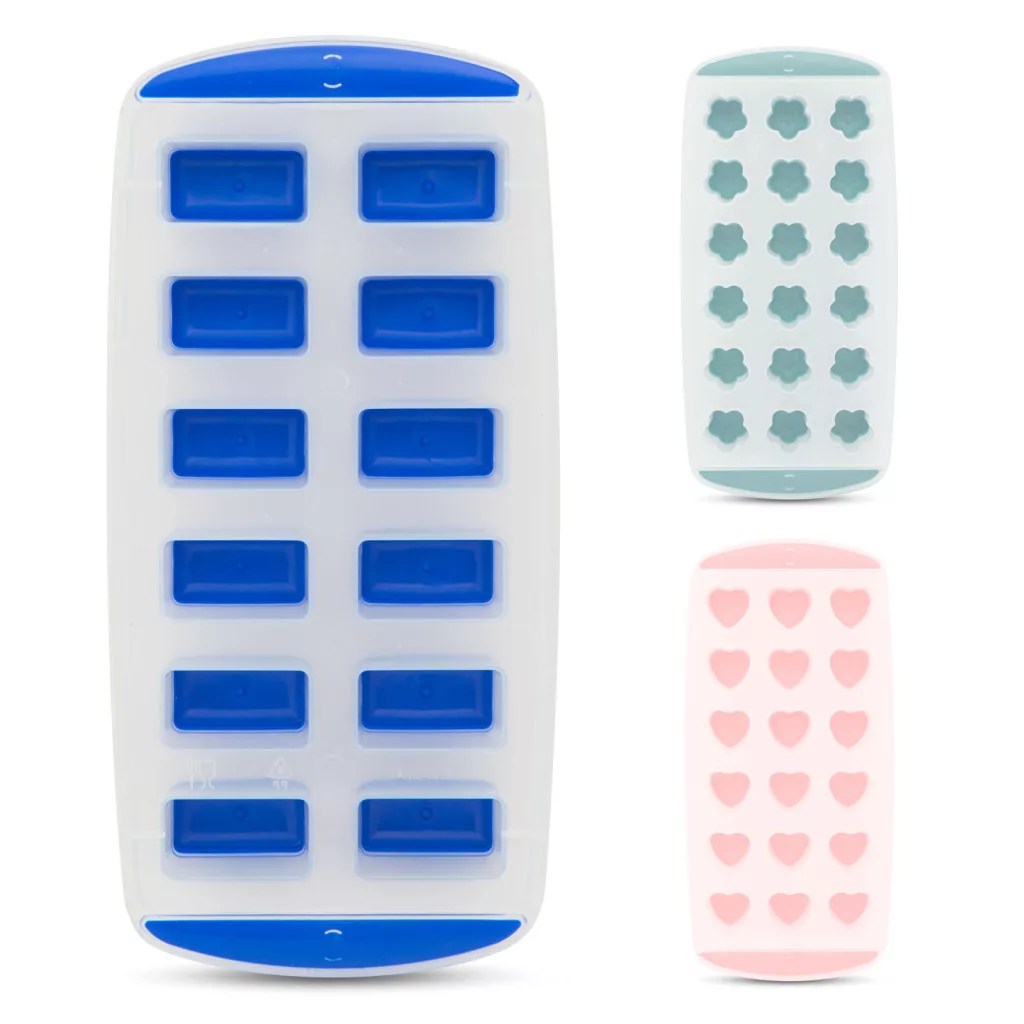 Virág, szív, téglalap alakú jégkockák készítéséhez, többféle színben.