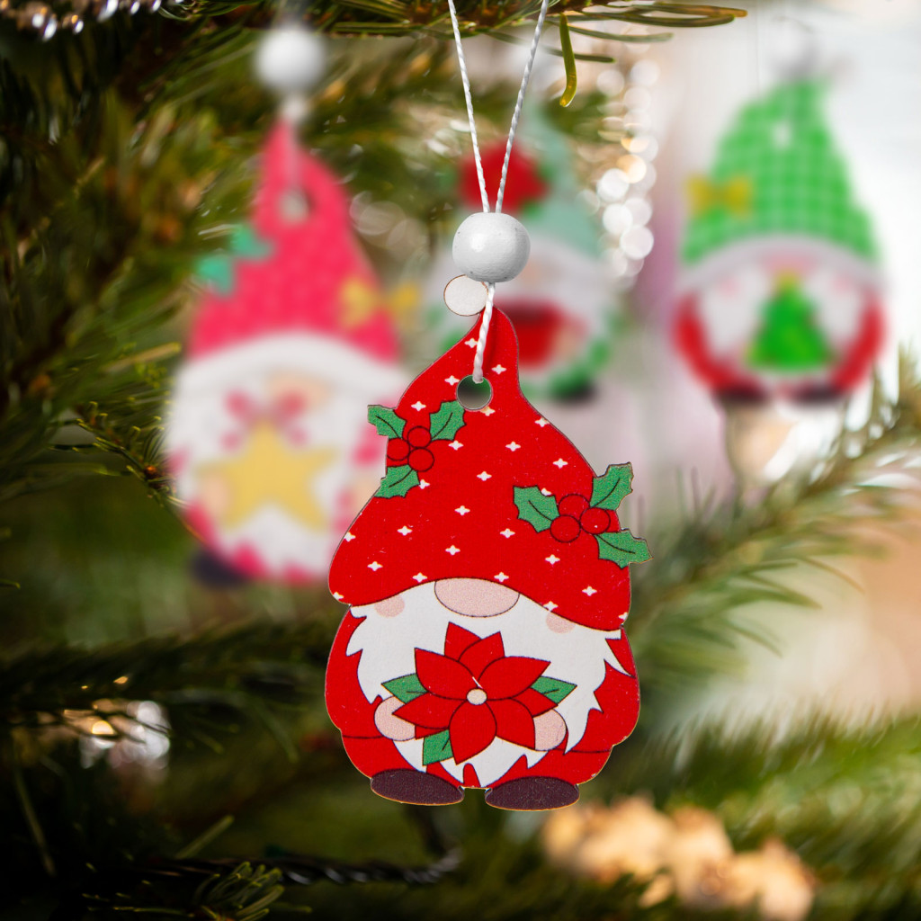 Aranyos karácsonyfadísz szett fából. Teremtsen meghitt hangulatot, díszítse karácsonyfáját természetes anyagokból készült díszekkel. Festett, összesen 12 db, négyféle skandináv manó figura egy csomagban.
