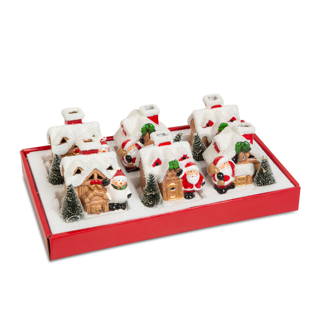 Díszítse otthonát az ünnep közeledtével téli kis házikókkal. A falu házikói melegfehér LED világítással rendelkeznek, ezáltal kellemes, meghitt hangulatot teremtenek otthonában. Minden házikó előtt aranyos karácsonyi figura és LED fénnyel szerelt fenyőfa található.