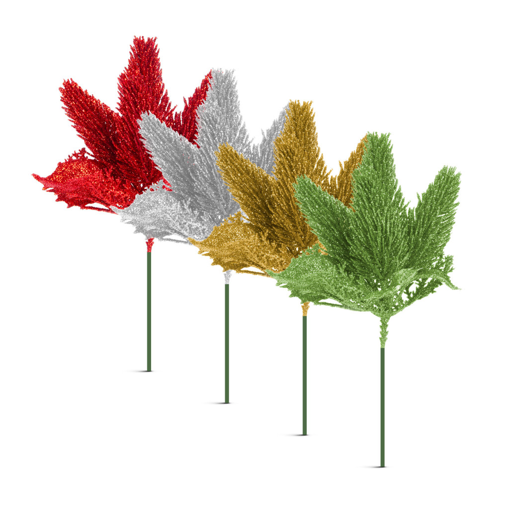 Kreatív dekoreszköz, amely széles körben felhasználható. Akár koszorú, asztali vagy ajtódísz, girlandok készítésénél is felhasználható, de karácsonyfára rögzítve is jól mutat. A glitteres borításon megcsillanó fények vonzzák a tekintetet! Hajlítható, leszúrható szárának köszönhetően könnyen rögzíthető a kívánt pozícióban.