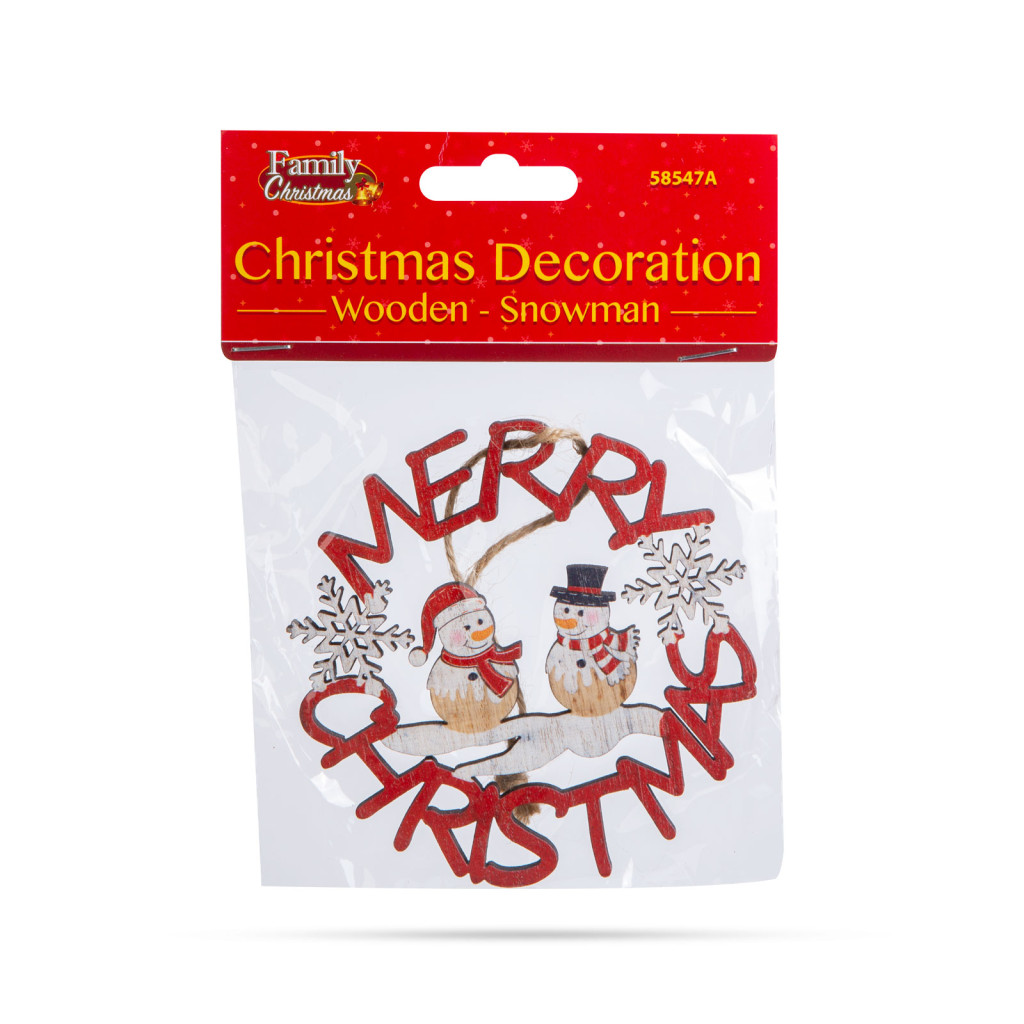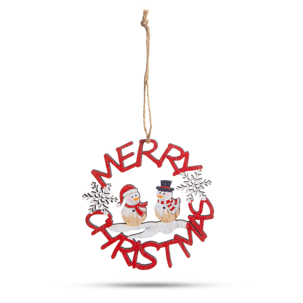 Ez a gyönyörű fából készült hóember figurás dísz tökéletes kiegészítője lehet a karácsonyi dekorációnak otthonában. Szépen kidolgozott, aranyos hóember figurák, amelyek "Merry Christmas" feliratban állnak, ami az ünnepi hangulatot és vidámságot sugallja. A fából készült díszek, melegséget és természetességet kölcsönöznek bármilyen ünnepi dekorációnak. A kidolgozott, részletesgazdag festés gondoskodik az aprólékos és szemet gyönyörködtető megjelenésről. A figura egy erős, de könnyű fából készült darab, amely felakasztható az otthona különböző pontjain.