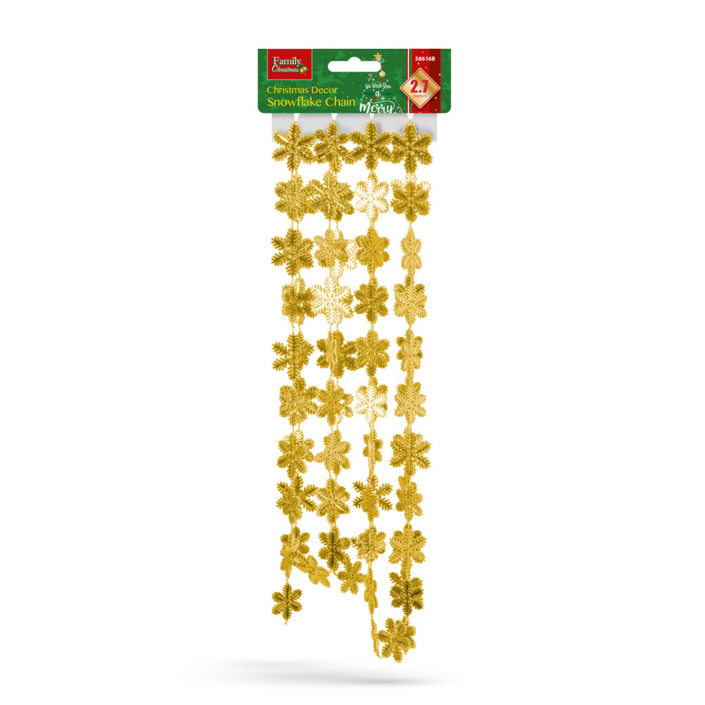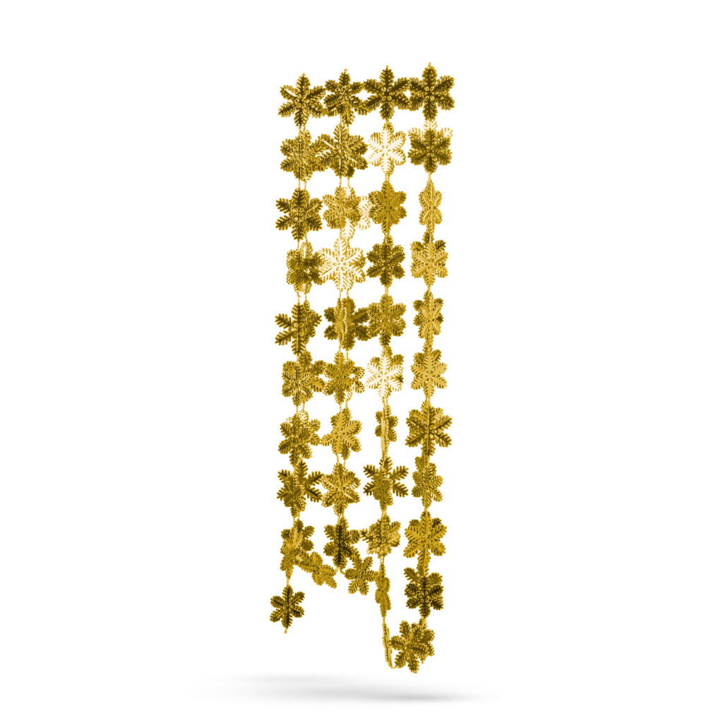 Díszítse otthonát, karácsonyfáját a szeretet ünnepén is. A csillogó, arany kis hópelyhek meghitt hangulatot varázsolnak otthonába. A 2,7 méter hosszú girland nagyméretű karácsonyfákon is jól mutat. A környezeti fények csillogása kelti igazán életre!