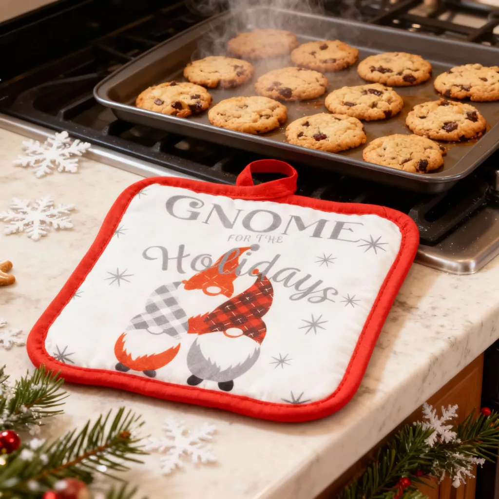 Varázsoljon ünnepi hangulatot konyhájába ezzel a bájos karácsonyi konyhai szettel, amely egy manómintás konyharuhát és kettő edényfogót/edényalátétet tartalmaz. A piros-fehér dizájn vidám karácsonyi hangulatot teremt, miközben praktikus segítséget nyújt a főzés és sütés során.