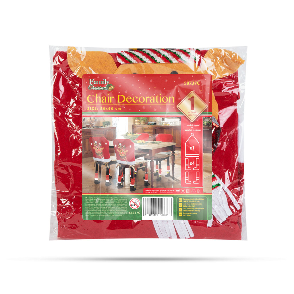 Öltöztesse otthonát ünnepi hangulatba ennek a székdekor szettnek a segítségével. A piros / fehér színek, minden ünnepi enteriőrben jól mutatnak. A nagy méret miatt a legtöbb székkel kompatibilis méret.