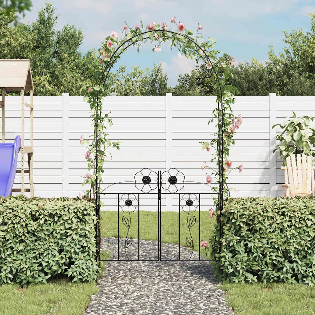Ez a kiváló minőségű kerti boltív / kapu a maga elegáns virágmintájával kiváló választás rózsák és kúszónövények növekedése szempontjából. Minden bizonnyal igazi látványosságot képez minden kertben, udvaron vagy teraszon. A tartós vasból készült, időjárásálló ajtóval ellátott kerti boltív kellően erős ahhoz, hogy a legerősebb kúszónövényeket is elbírja. Könnyen üzembe helyezhető, felszerelhető.