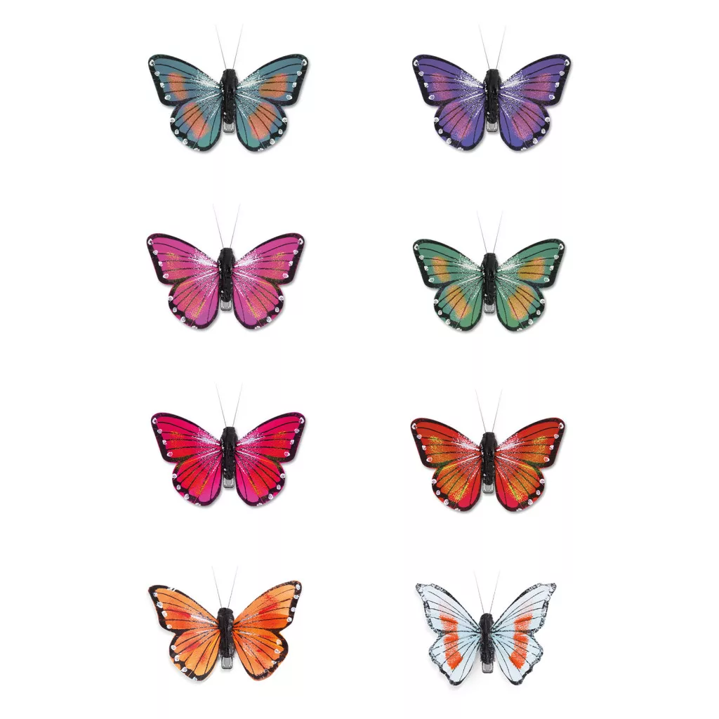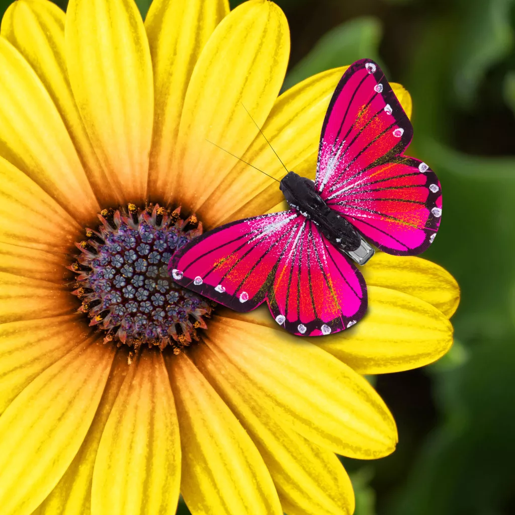 A "tökéletes kert" a részletekben rejlik! Dekorálja kertjét ezekkel a vidám, színes pillangókkal. Csodálatos kiegészítője lehet virágoskerteknek. A pillangók csipesz segítségével bárhová egyszerűen rögzíthetőek.