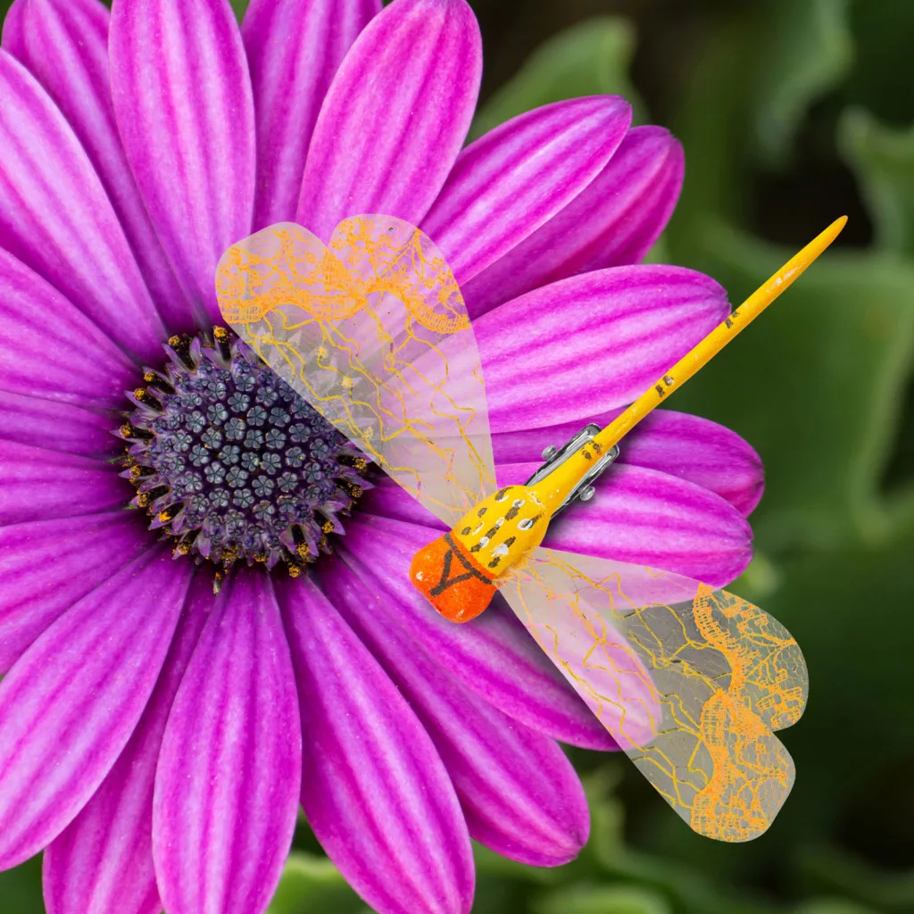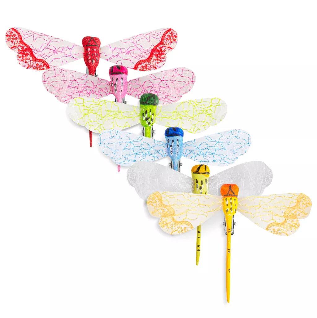 A "tökéletes kert" a részletekben rejlik! Dekorálja kertjét ezekkel a vidám, színes szitakötőkkel. Csodálatos kiegészítője lehet virágoskerteknek. A szitakötők csipesz segítségével bárhová egyszerűen rögzíthetőek.