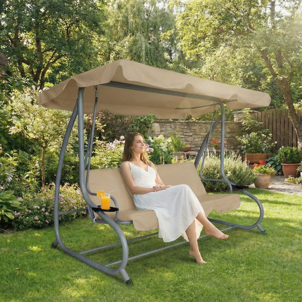 Stabil szerkezetű, stílusos megjelenésű kerti hintaágy akár 3 fő pihenését is garantálja! Ideális választás kertekbe, teraszokra, vagy akár strandokra is! Modern kialakításával és stabil fémszerkezetével garantáltan kiemelkedik majd a kerti bútorok közül. Az időjárásálló kivitelnek köszönhetően a hinta ellenáll az időjárás viszontagságainak, biztosítva hosszú élettartamát.