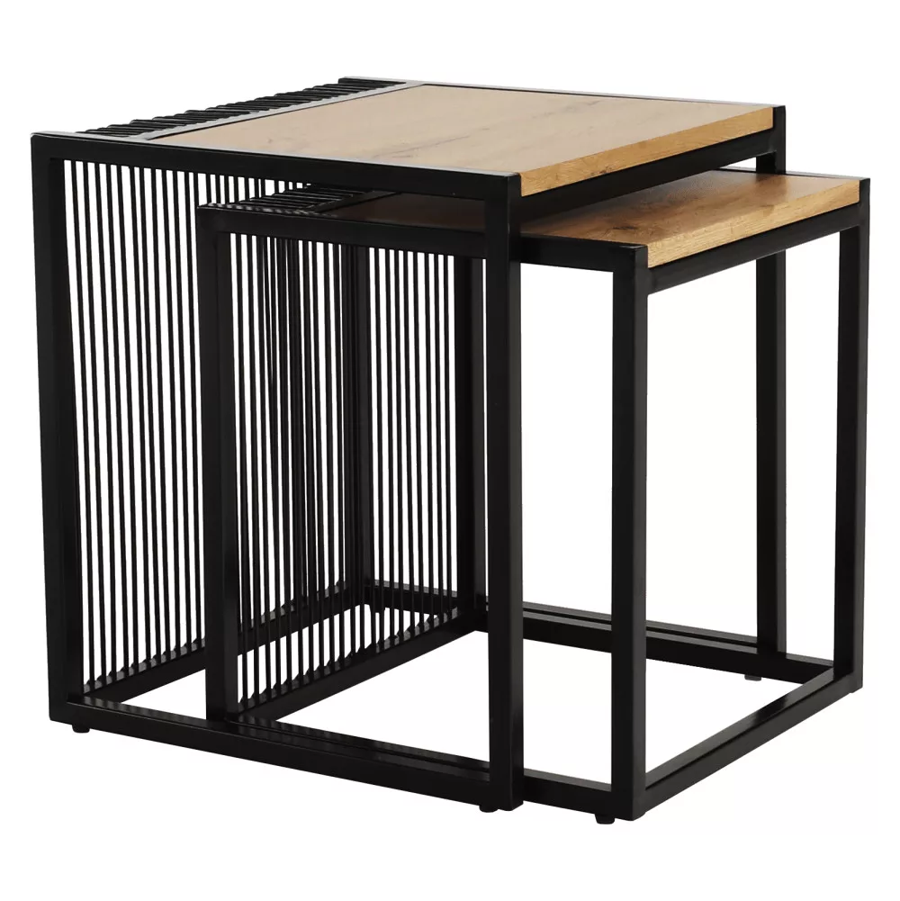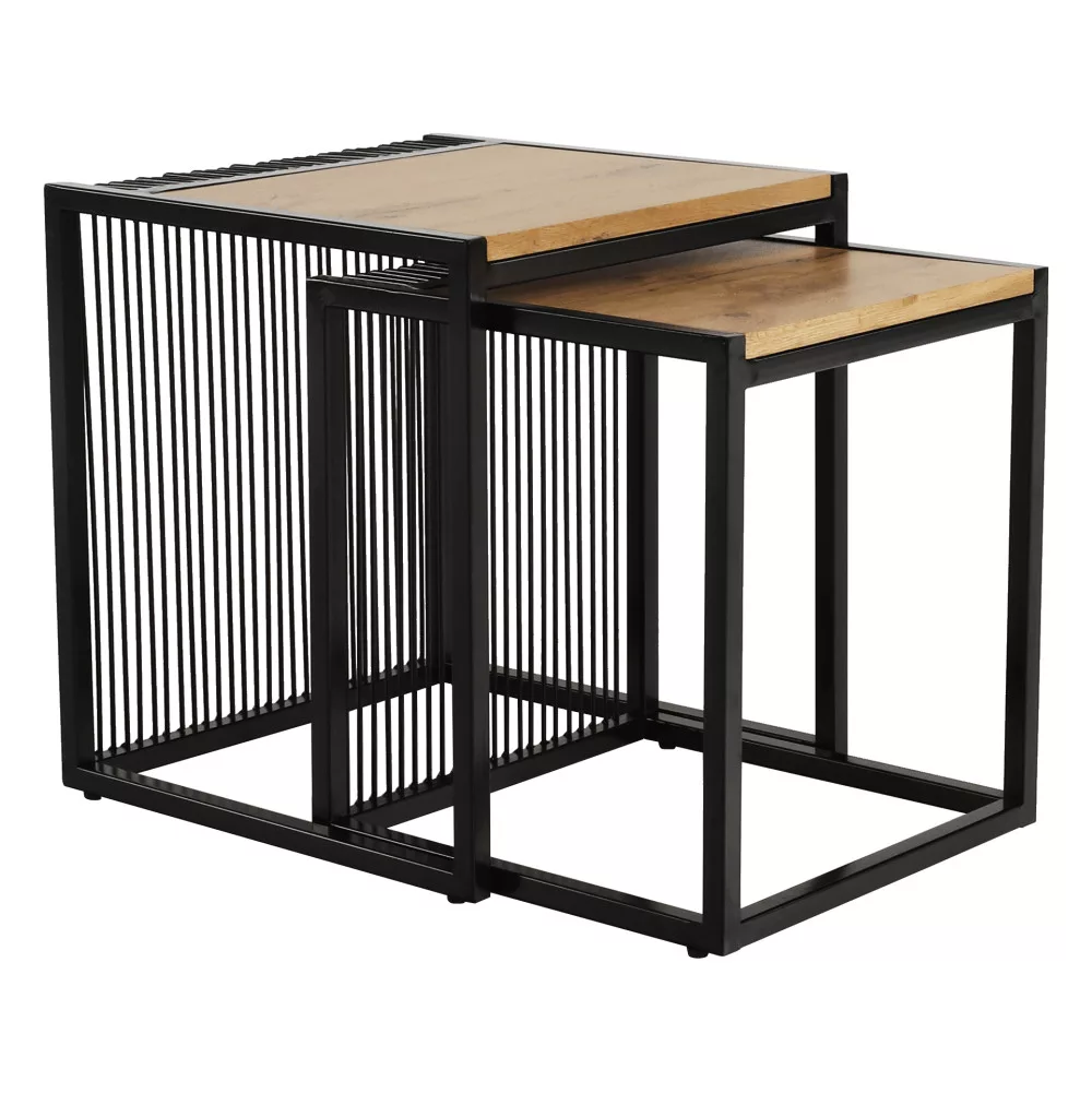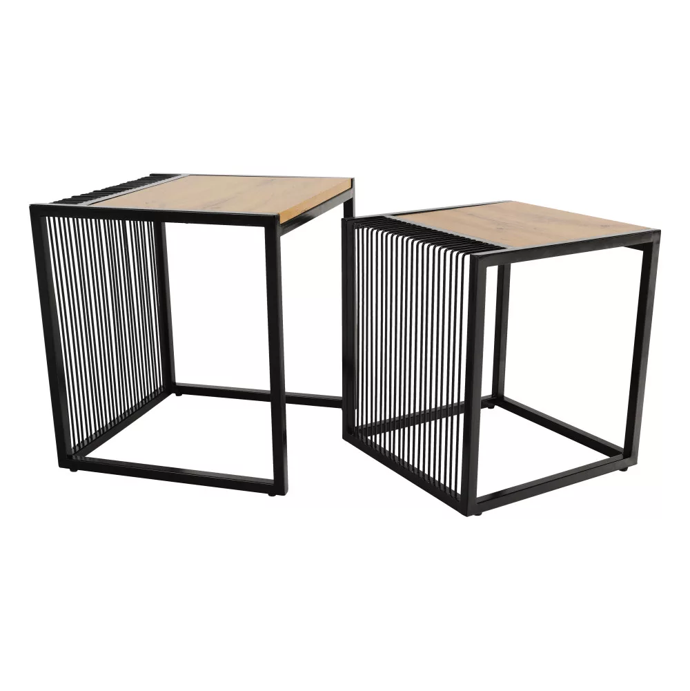 Két dohányzóasztal készlet, tölgyfa/fekete, RIMBO