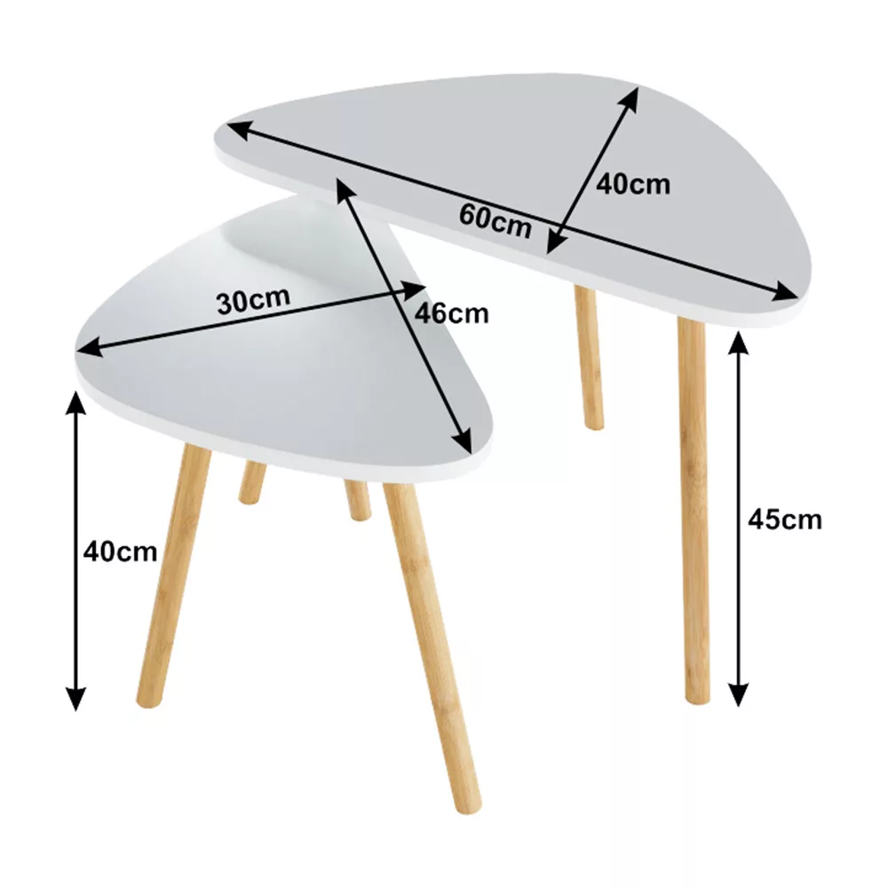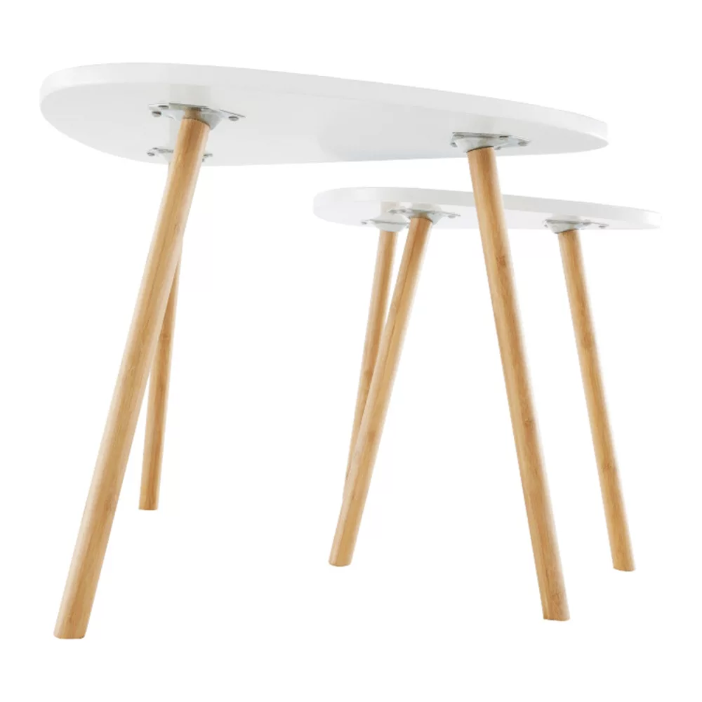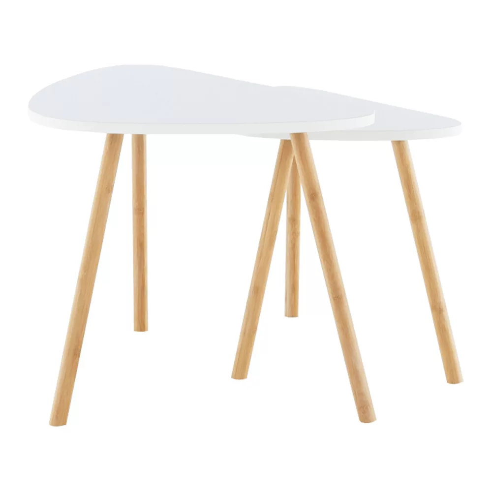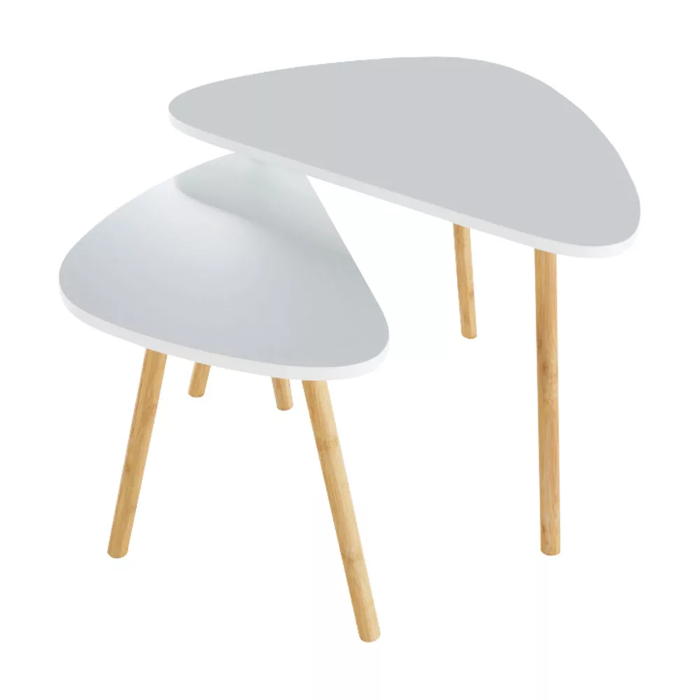 Két dohányzóasztal szett, fehér/természetes, BISMAK