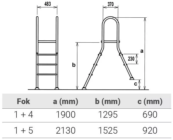 Praktikus és helytakarékos megoldás a medencébe való biztonságos be- és kilépéshez! Az eltérő fokszámú (1+4) kialakítás ideálissá teszi ezt a létrát olyan medencékhez, ahol a külső és belső oldalon különböző magasságokhoz kell alkalmazkodni.
