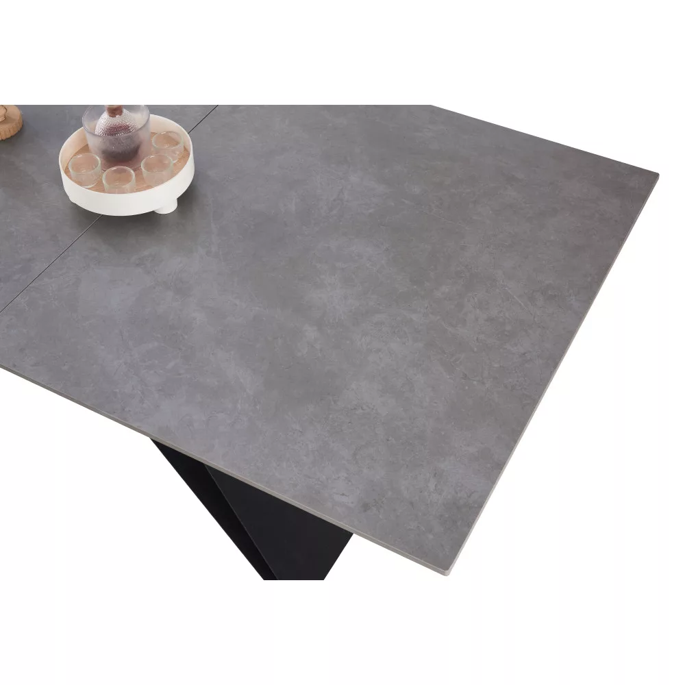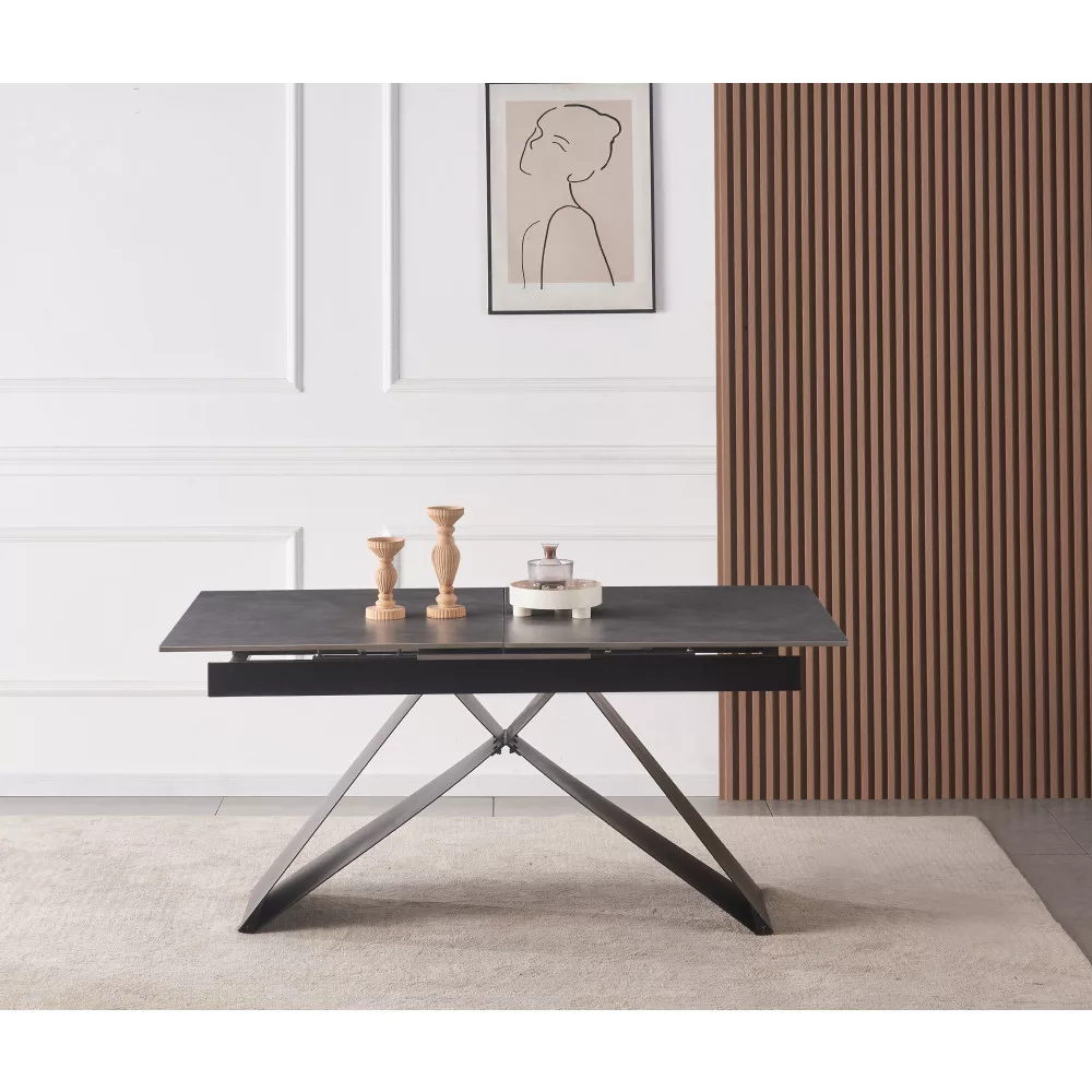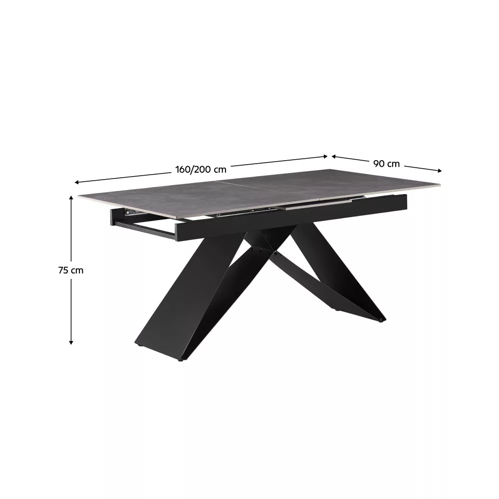 Kihúzható étkezőasztal, beton/fekete, 160-200x90 cm, MAJED