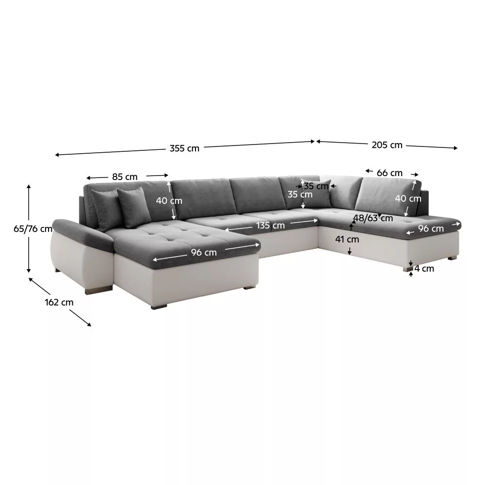 Méretek (SzxMéxMa): 355x205/162x65/76 cm