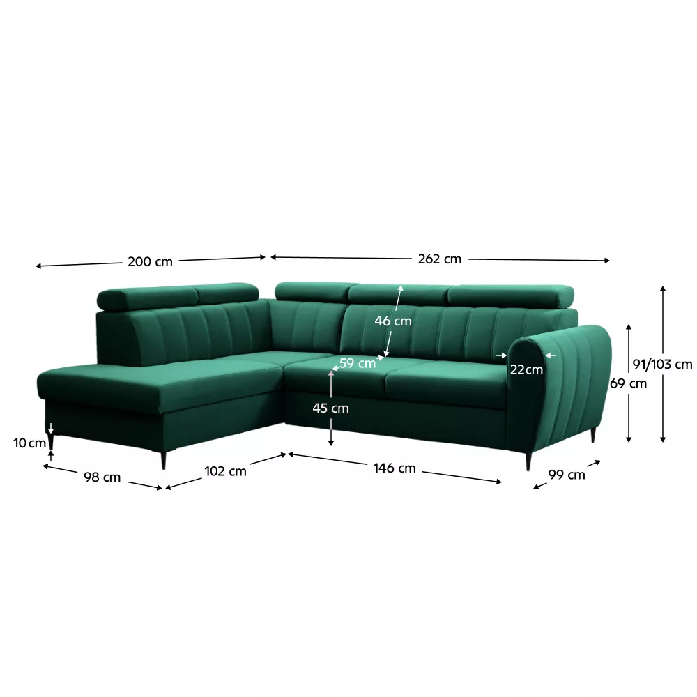 Méretek (SzxMéxMa): 262x200x91/103 cm
