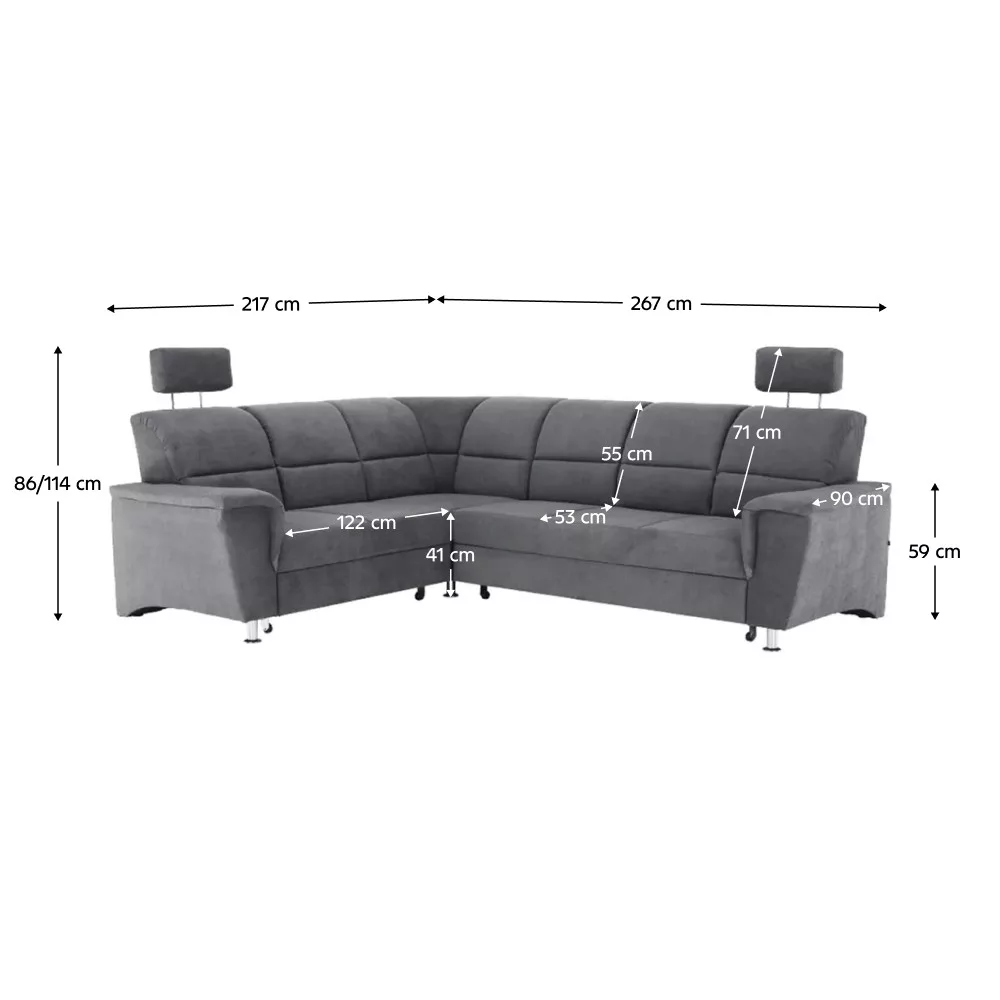 Méretek (SzéxMéxMa): 267x217x86/114 cm